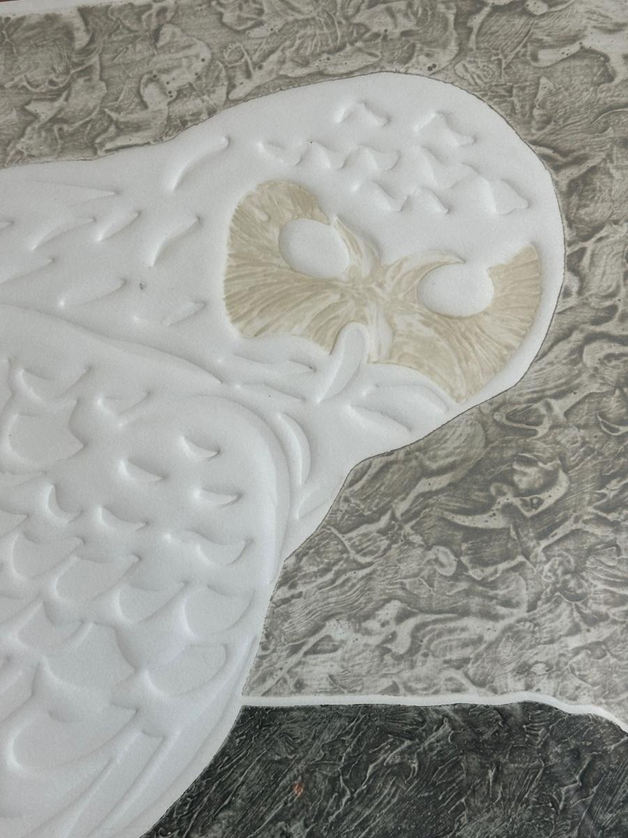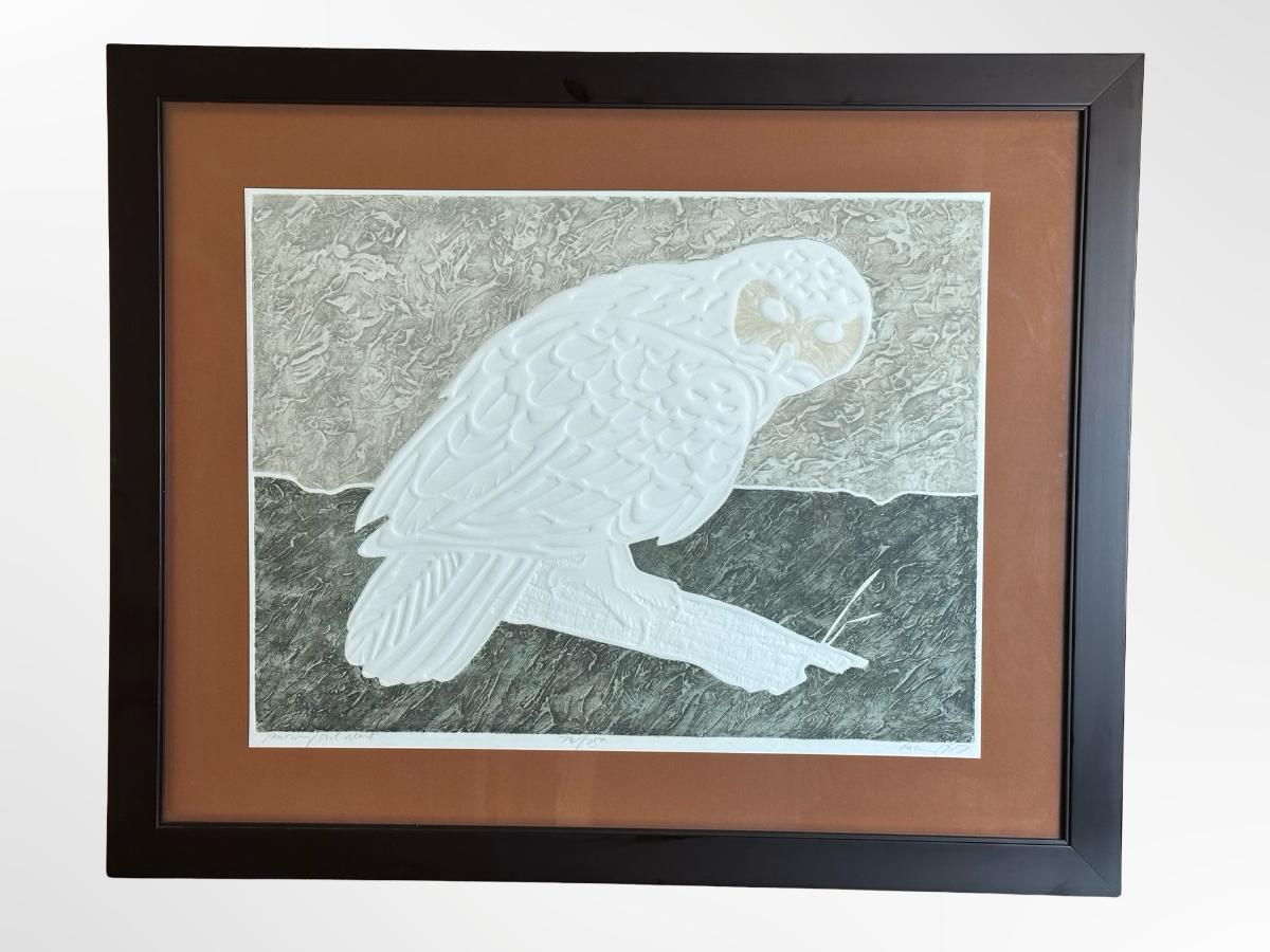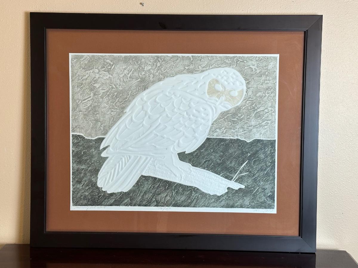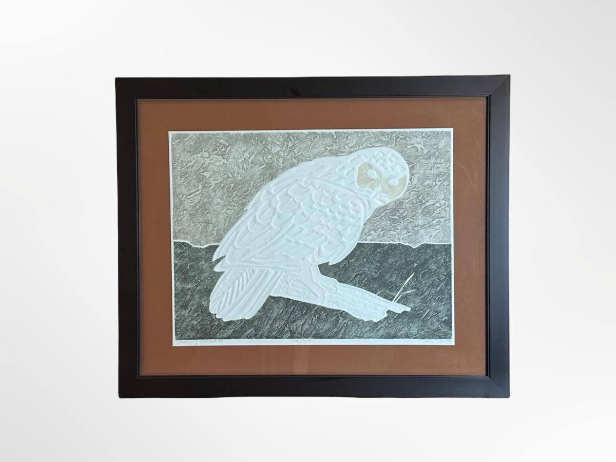 1977 Signed Embossed Print “Snowy Owl Alert” — Hand-Titled & Dated