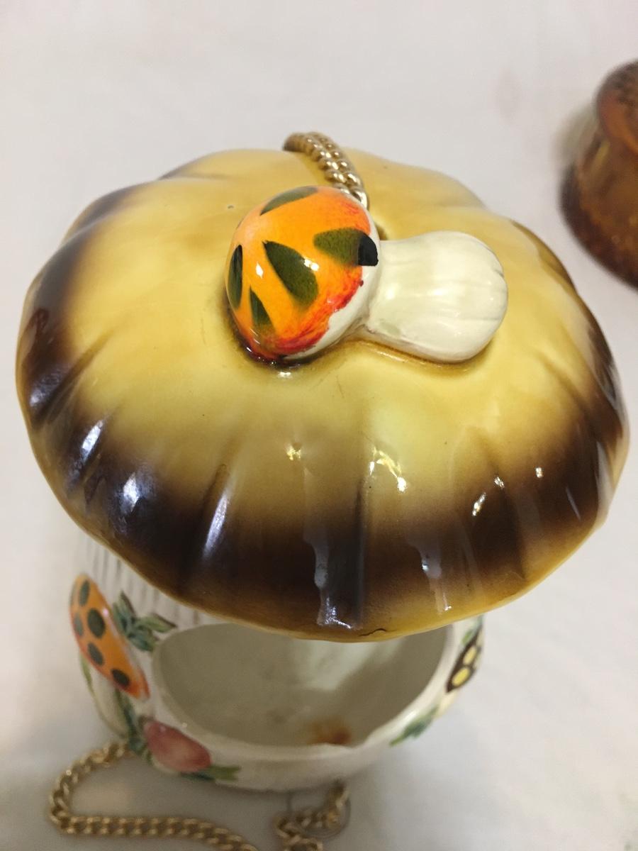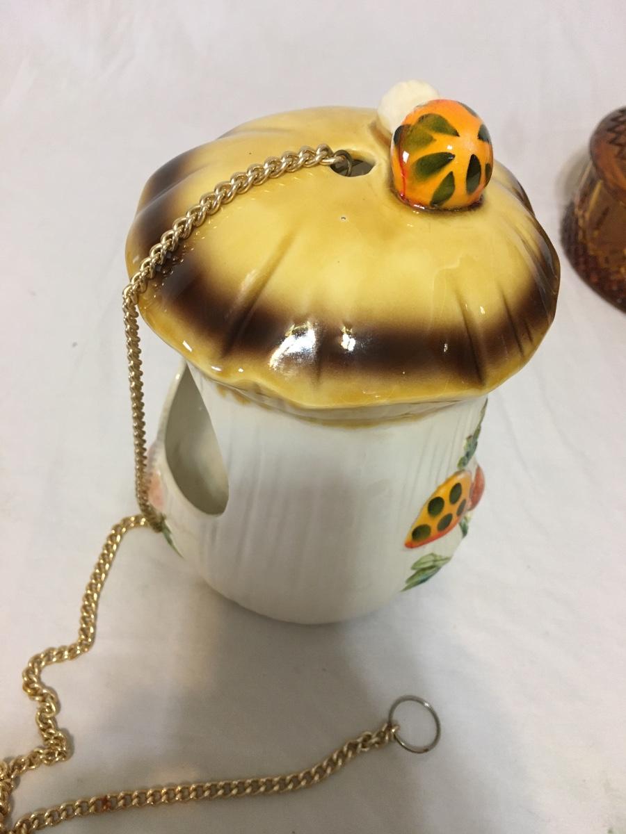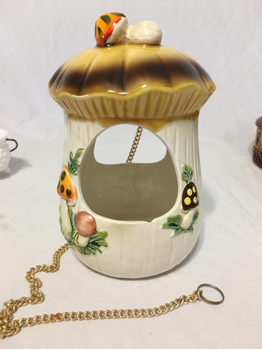 1977 Vintage Sears Merry Mushroom Ceramic Hanging Planter / Bird feeder