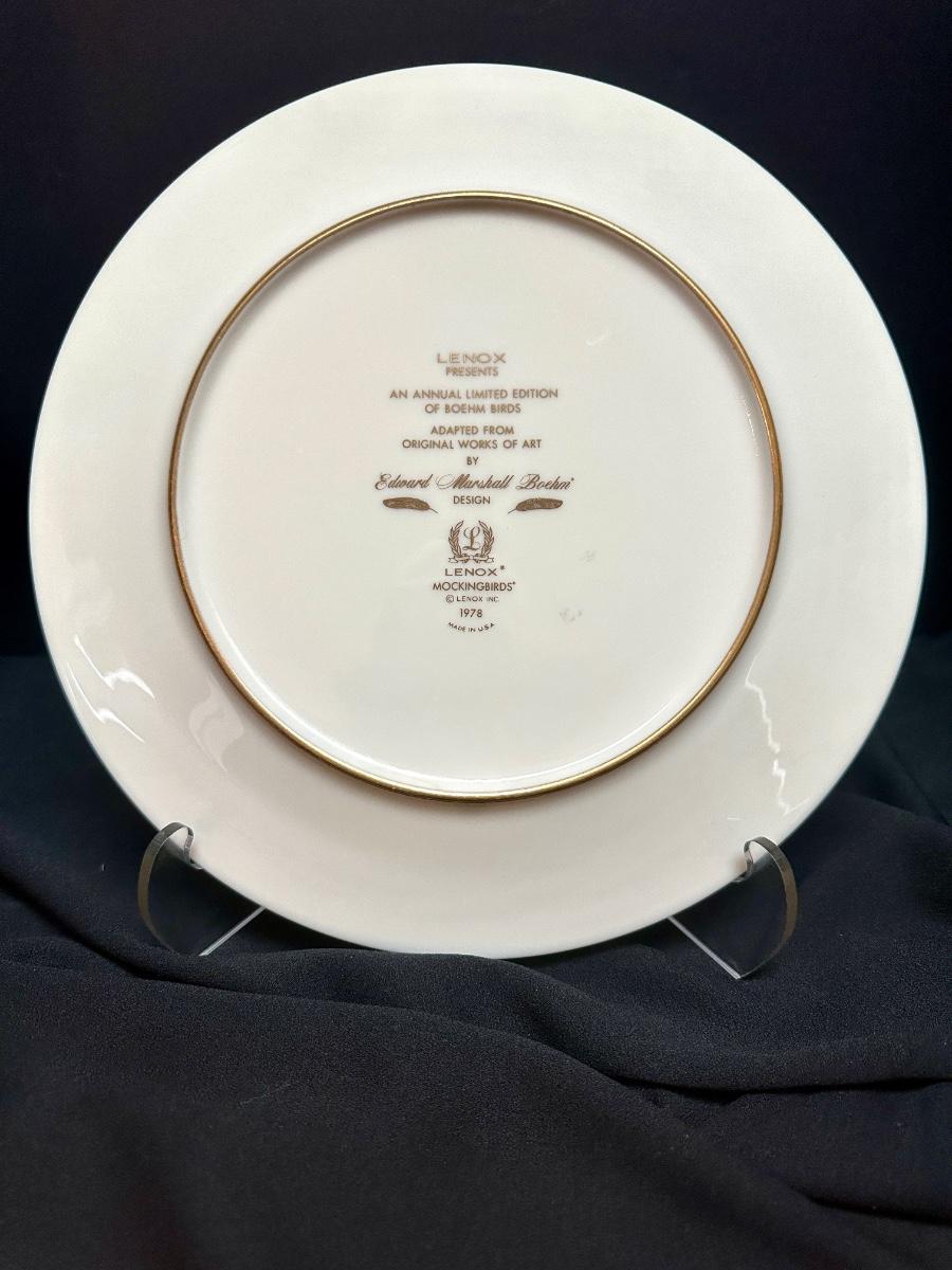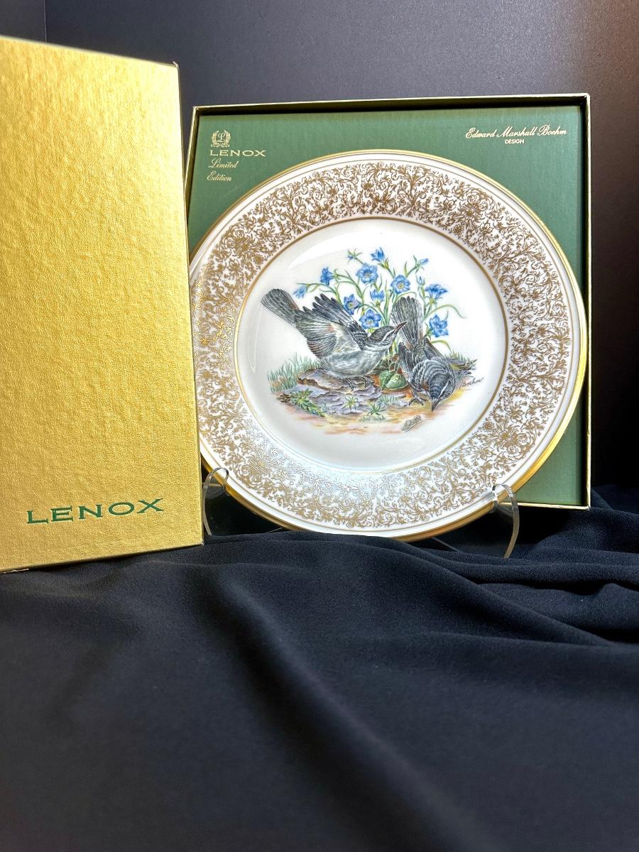 Vintage Lenox limited edition designer plate from the Boehm Bird collection series. Bone china trimmed in 24k gold, this beautiful collector’s piece is based on the artist Edward Marshall Boehm. Original box and certificate, 10 ¾”