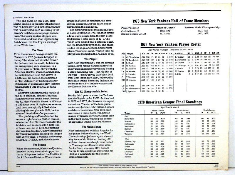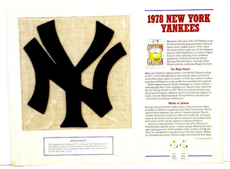 1978 New York Yankees Official MLB Team Patch from Cooperstown Collection by Willabee & Ward, comes in protective sleeve with statistics and info card.