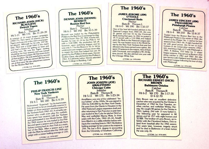 1978 TCMA BASEBALL CARDS SET - The 1960's - 580 CARDS LOT - ALL MINT