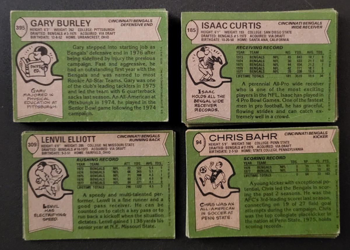 1978 Topps Bengals Various Players. Lots of Duplicates of individual players (180 cards in total)