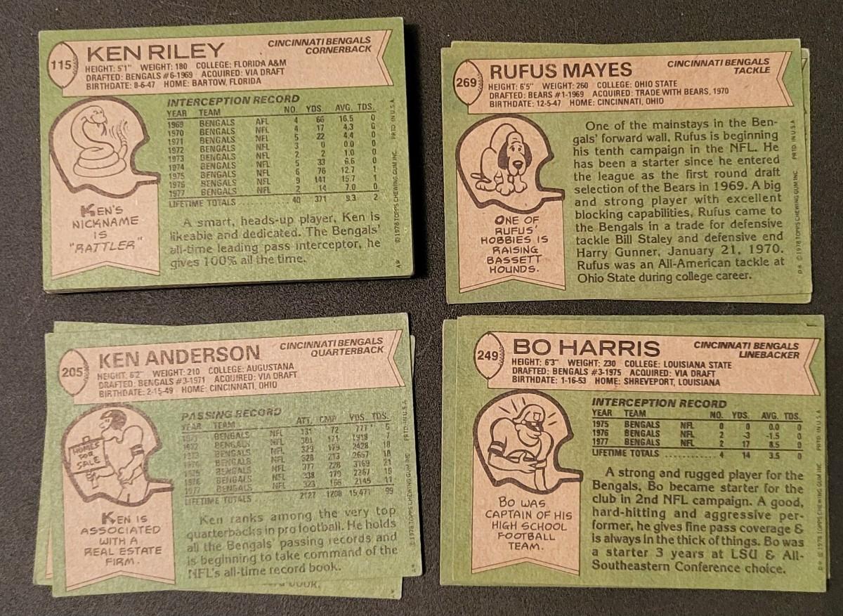 1978 Topps Bengals Various Players With Lots of Duplicates
