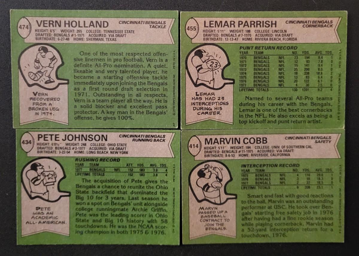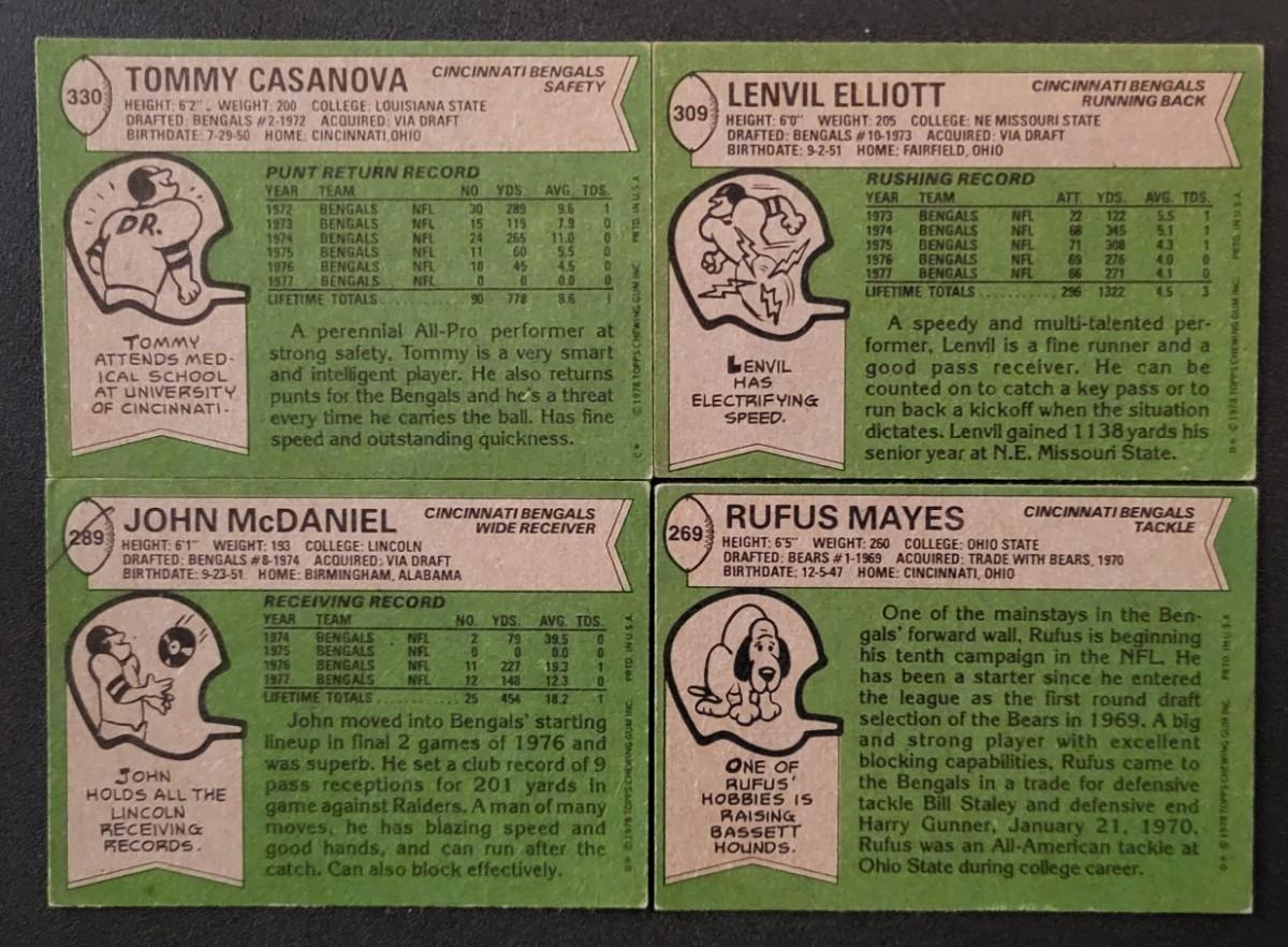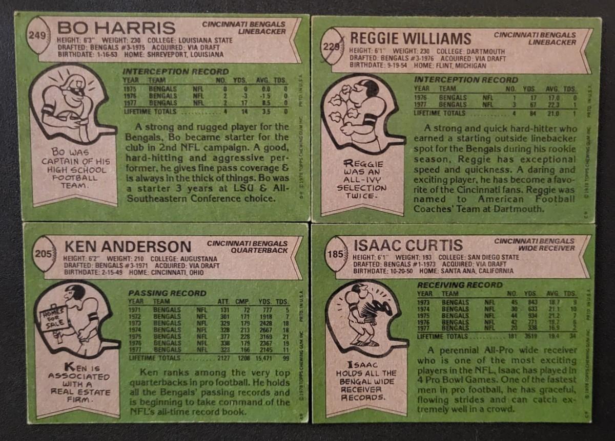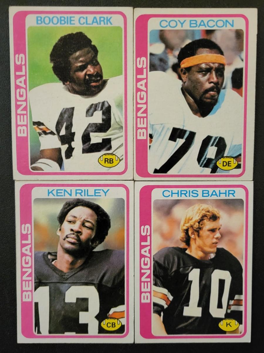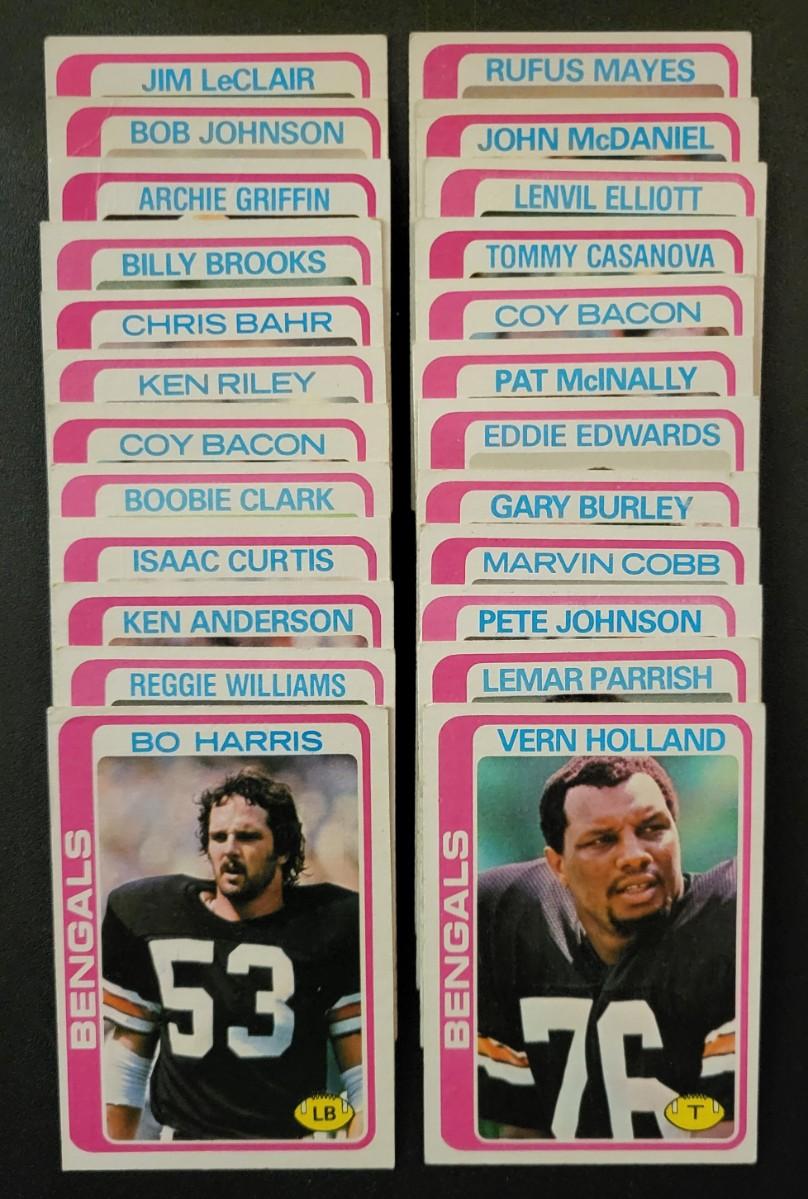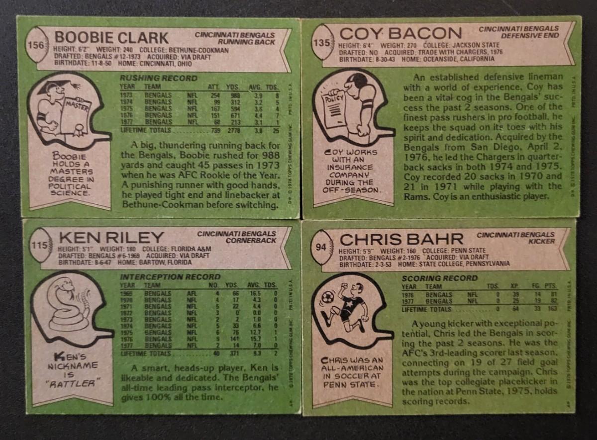 1978 Topps Chewing Gum Inc. Bengals Various Players. One Coy Bacon card has an error on the back.
