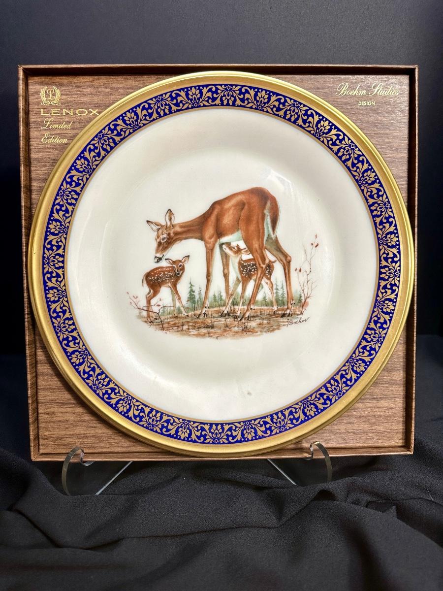 Vintage Lenox limited edition designer plate from the Boehm woodland wildlife collection series. Bone china trimmed in 24k gold, this beautiful collector’s piece is based on the artist Edward Marshall Boehm. Original box and certificate, 10 ¾”