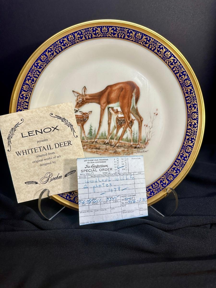 Vintage Lenox limited edition designer plate from the Boehm woodland wildlife collection series. Bone china trimmed in 24k gold, this beautiful collector’s piece is based on the artist Edward Marshall Boehm. Original box and certificate, 10 ¾”