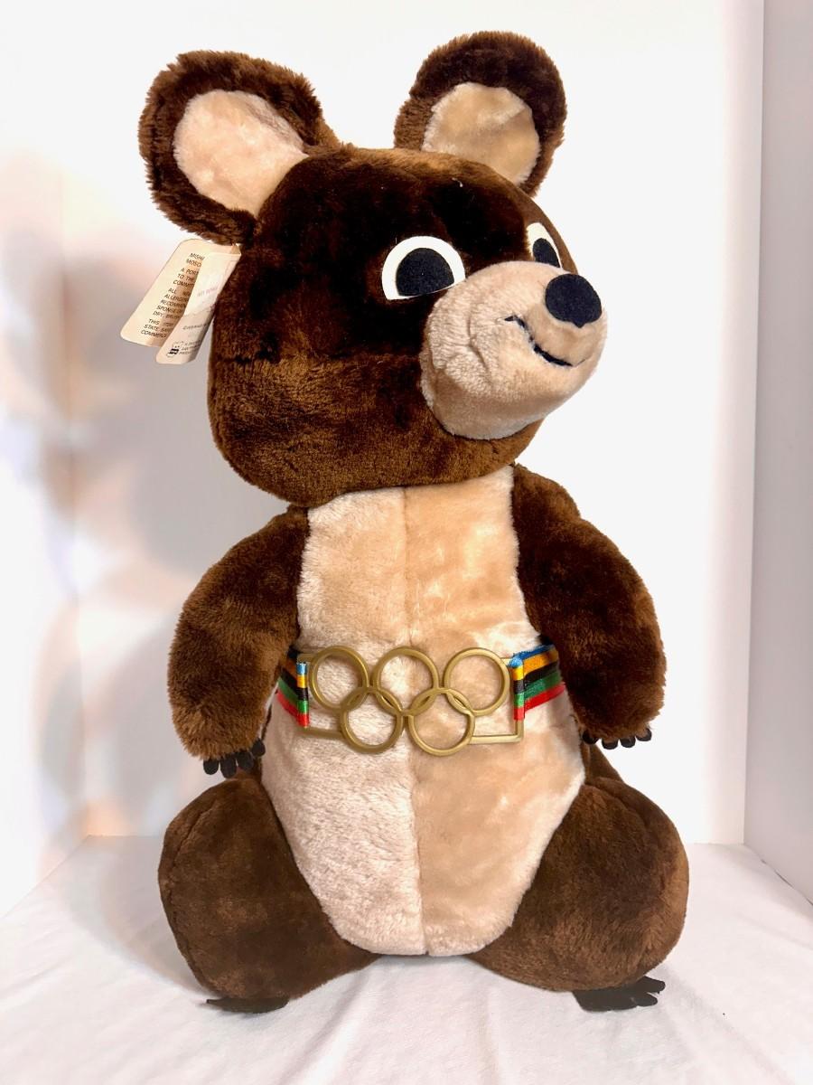 Official mascot doll of the 1980 Moscow / USSR hosted olympics before the fall of the Soviet Union. Misha the bear was designed by famed children's illustrator Victor Chizhikov and wears the colors and rings of the Olympics as a belt . Hard to find 22" version of the bear with original tags.