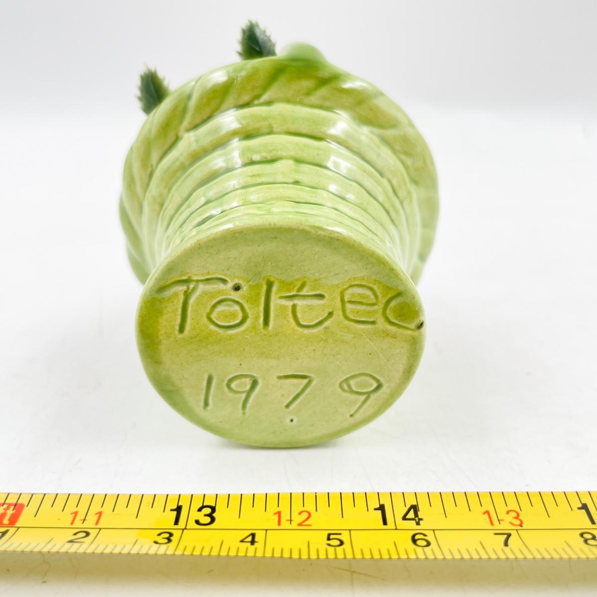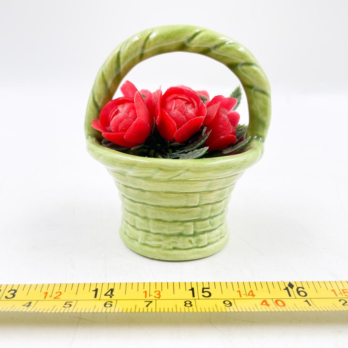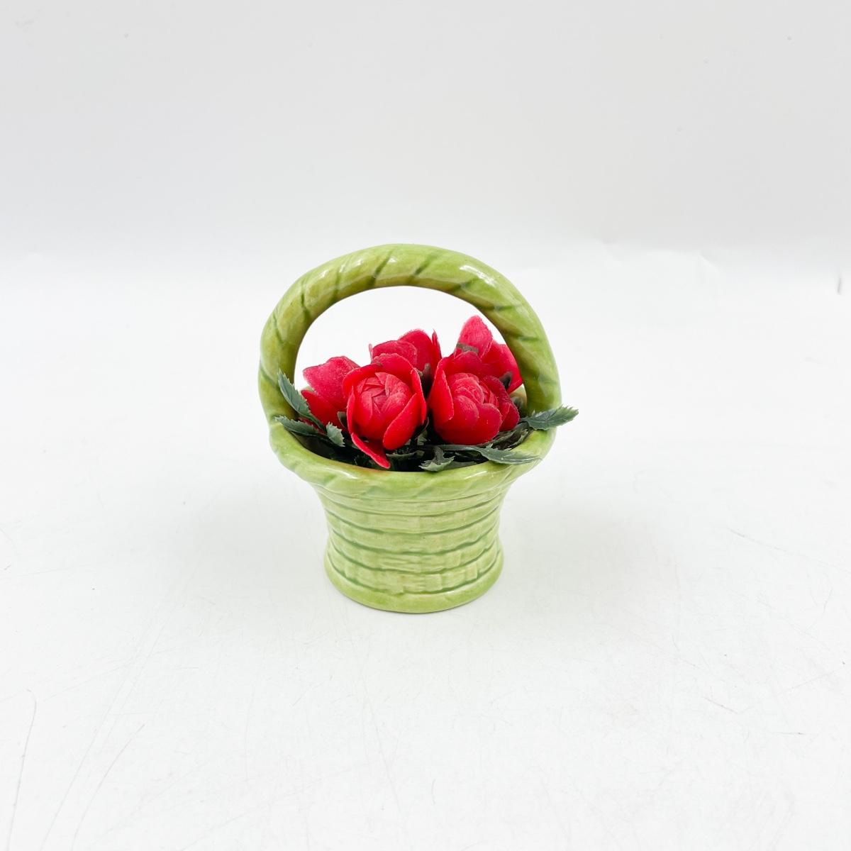 1979 3” CERAMIC BASKET W/ FAUX FLOWERS - SIGNED “TOLTEC”
