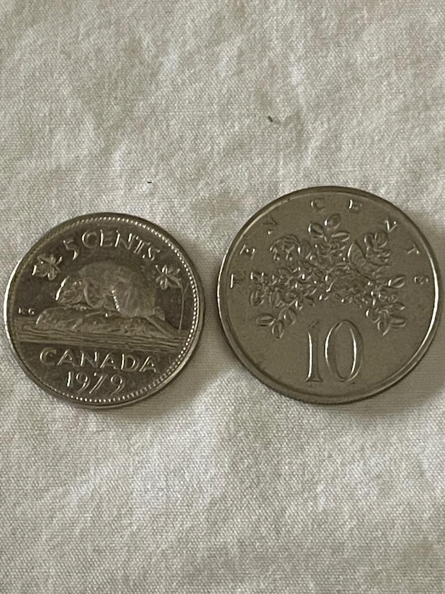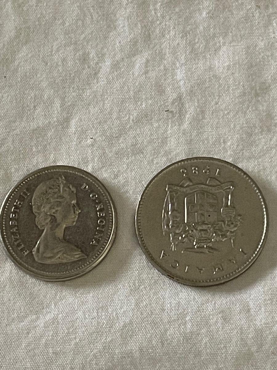 1979 CANADIAN QUEEN ELIZABETH II QUARTER. 1986 JAMAICAN TEN CENT COIN
