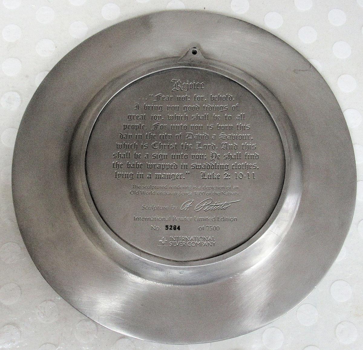 1979 Christmas Issue, Rejoice Pewter Plate, Lt Ed 5284/7500, International Silver Co, Read description