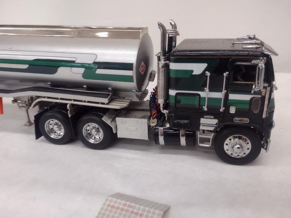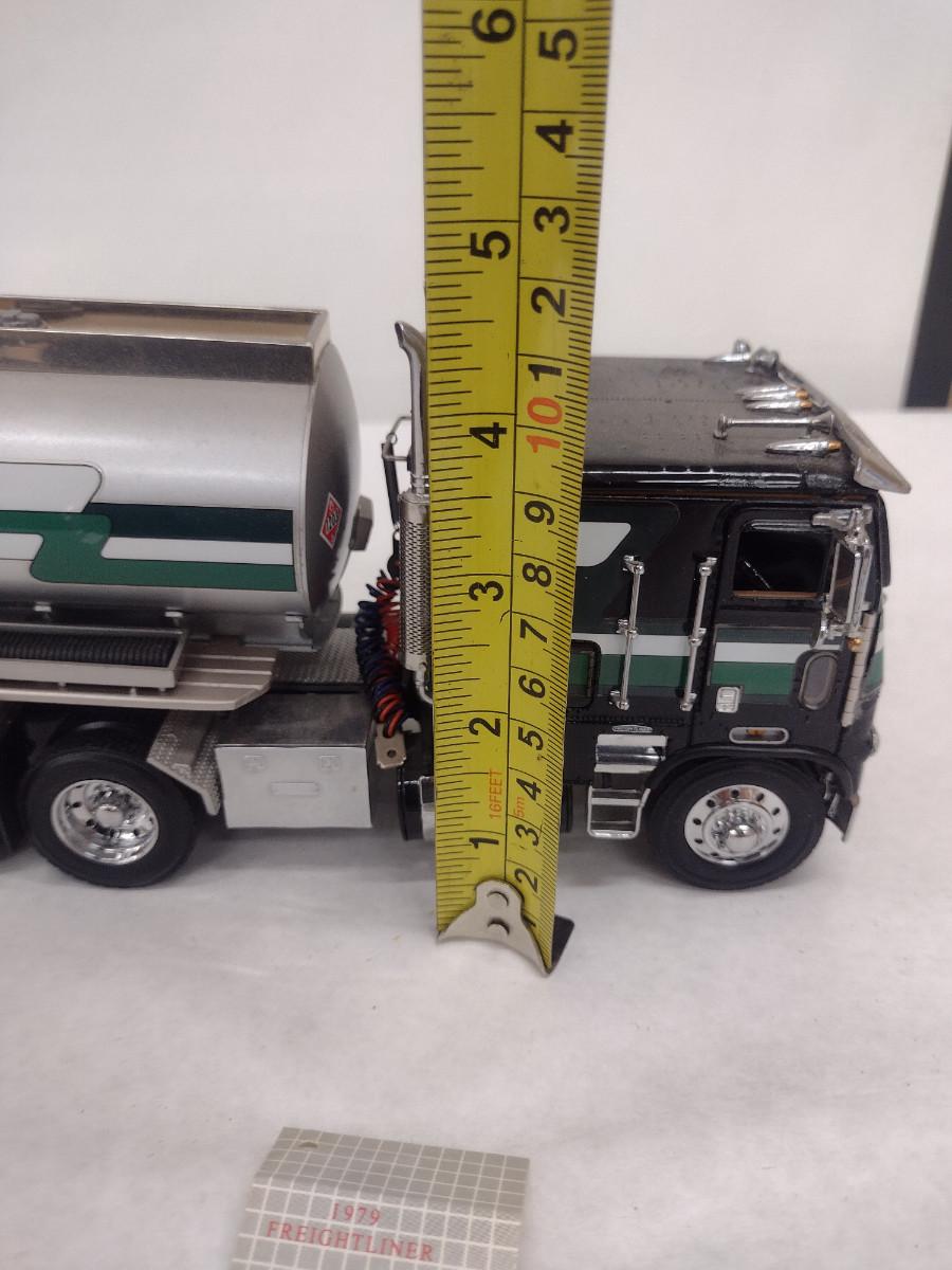 1979 Freightliner Tractor and Tanker Trailer Die Cast Model (#55). Measures approx 20" long. Item is in used condition and may have missing parts- please see all pictures.