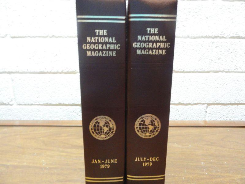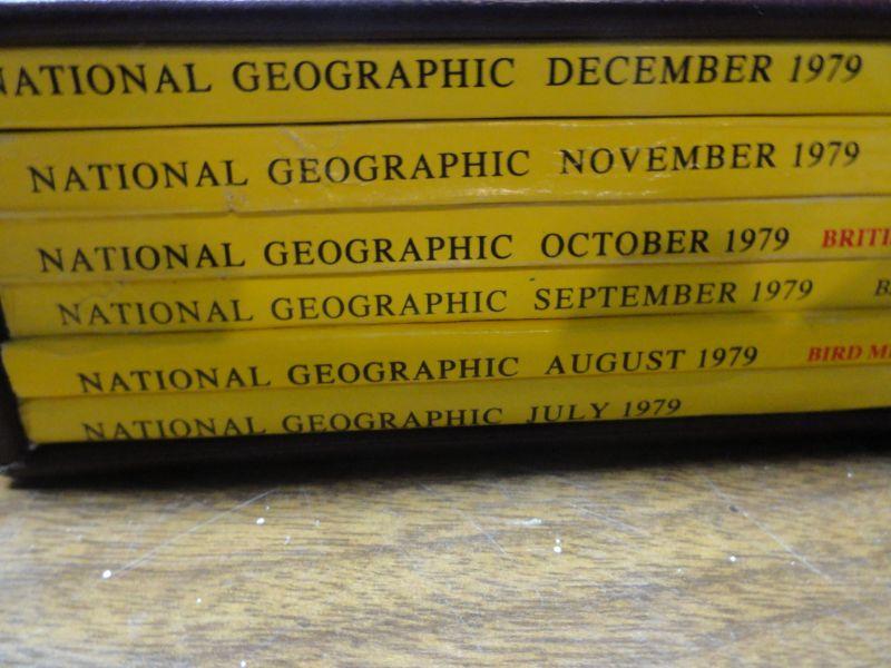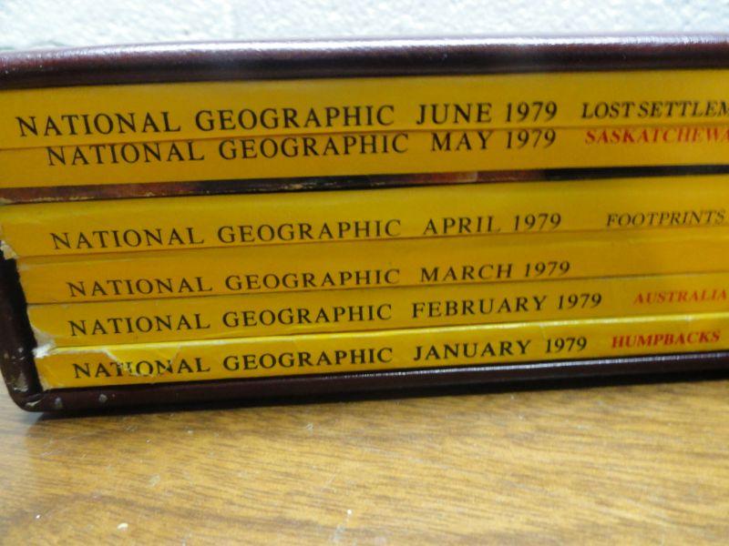 1979 National Geographic Magazine - complete set of 12 with faux leather cases Cases in great condition Books in normal good condition