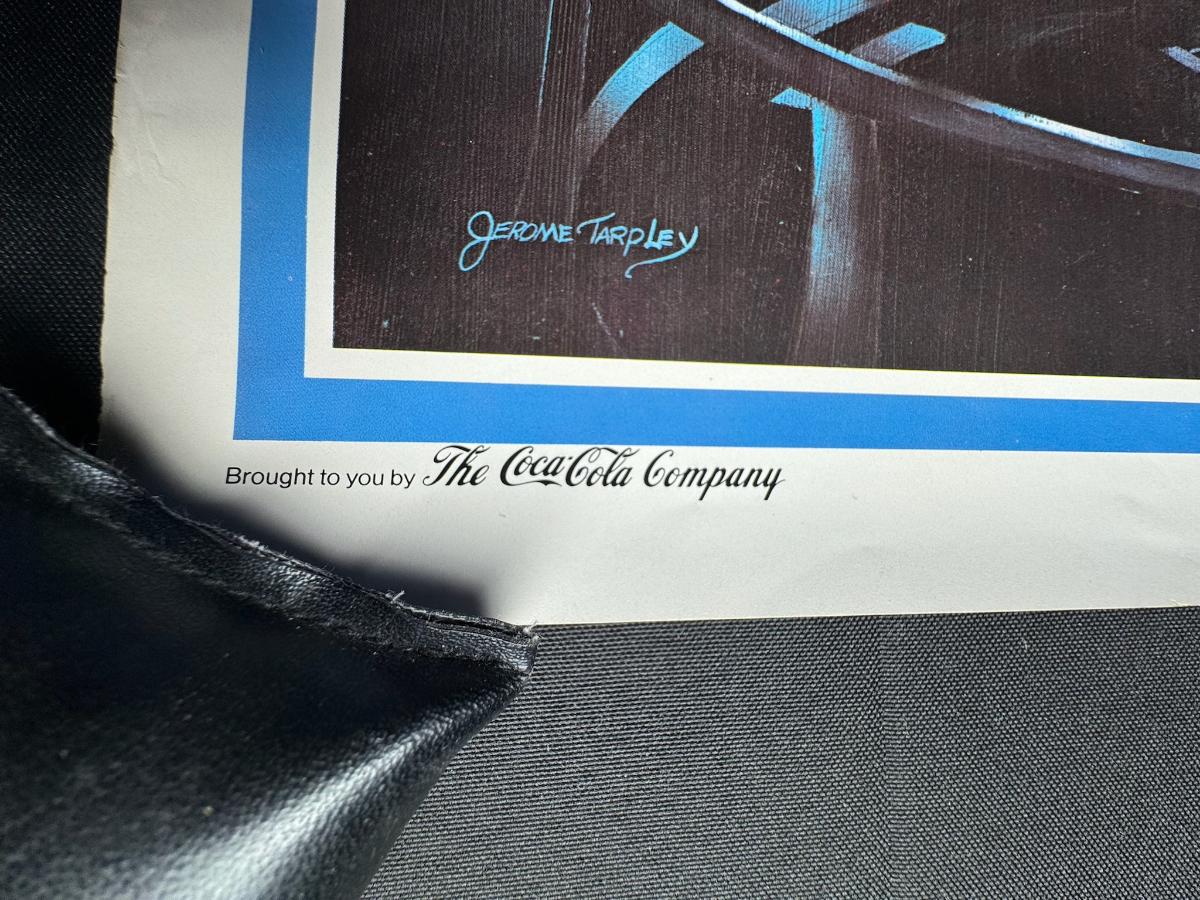 This poster is believed to be sponsored by Coca-Cola, and is facsimile signed by Gerome Tarpley. Age related wear, including nicks along the border. Measurement: 18” x 24”.