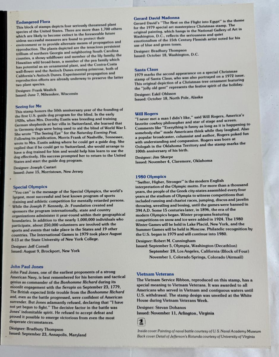 1979 US Postal Service Mint Commemorative Stamp Set