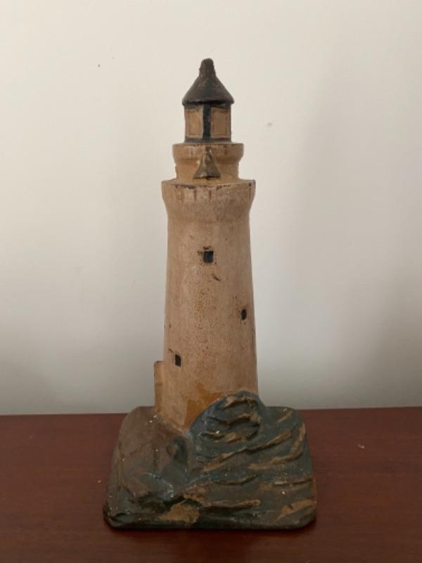 198 Antique 1927 A.A. Richardson Lighthouse Door Stop Cast Iron