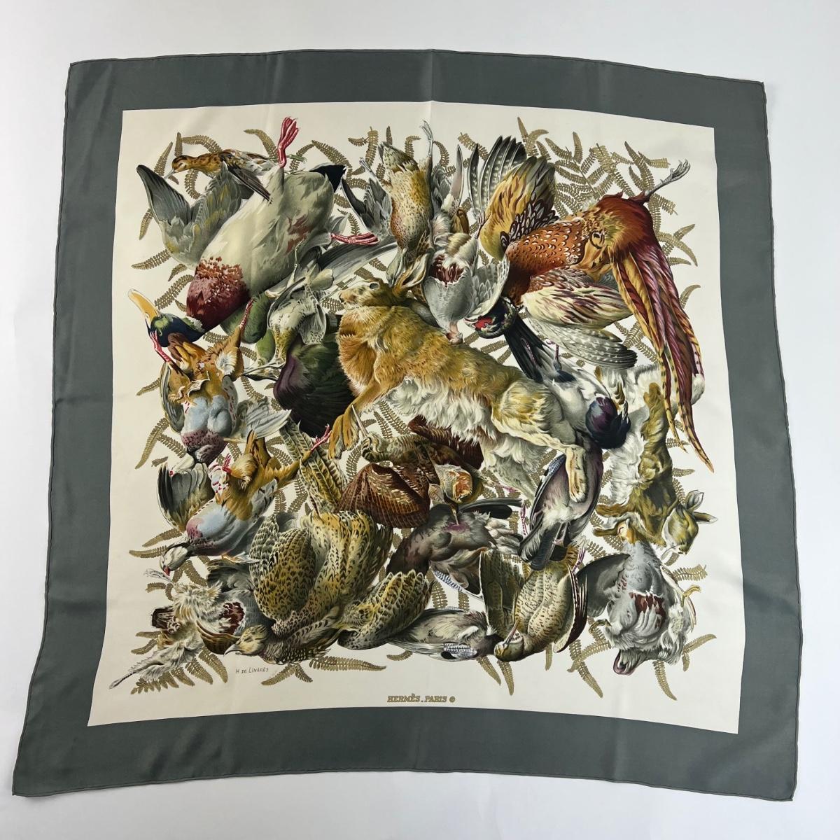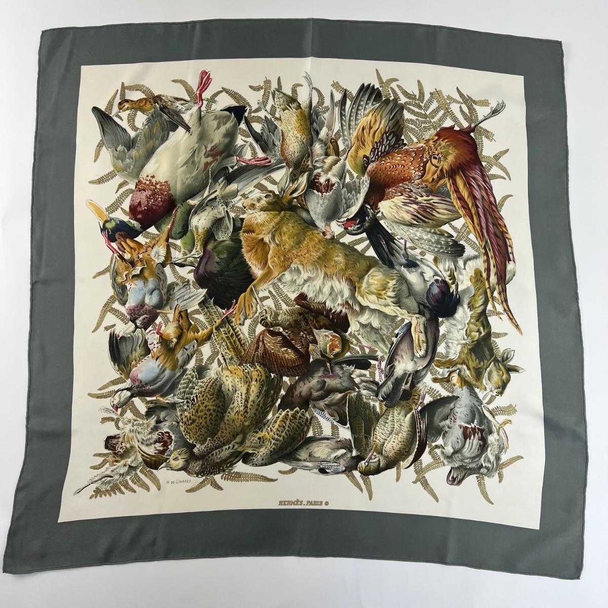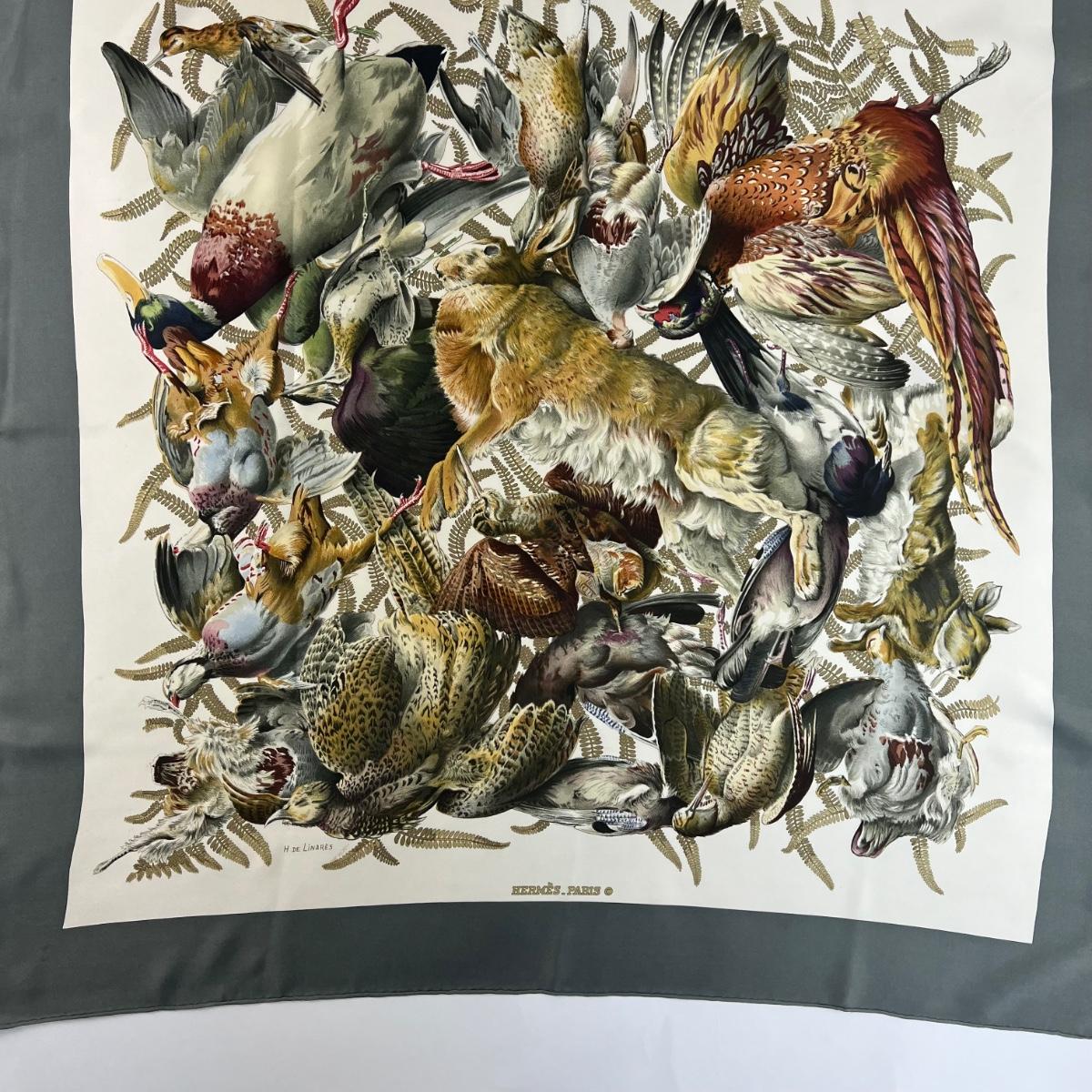 198 Authentic HERMÈS Carre 90 Silk Scarf Gibiers by Henri De Linares 1966