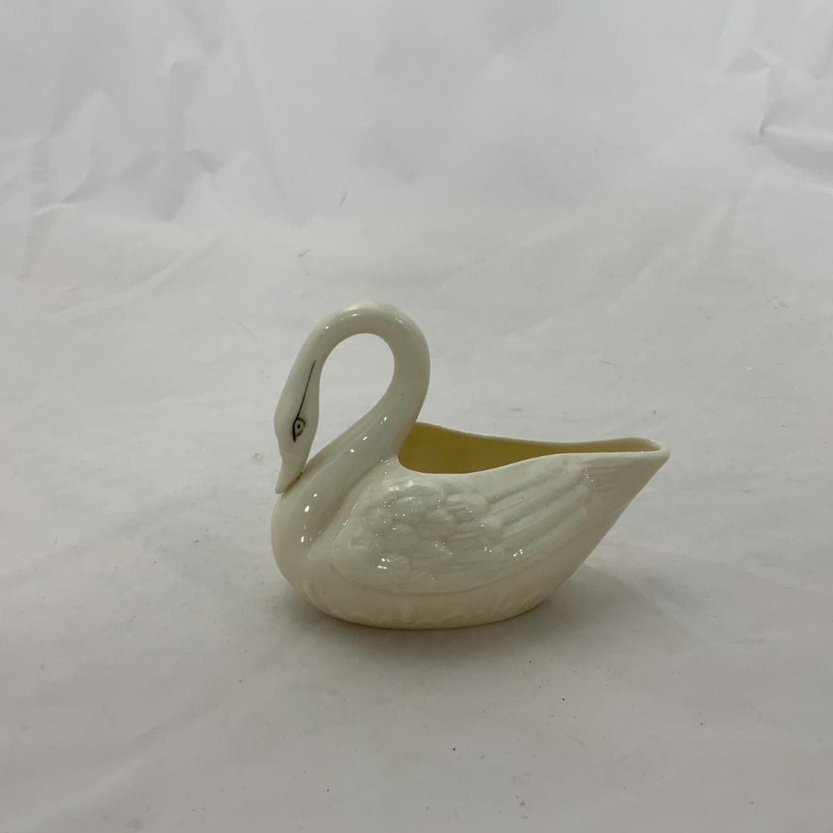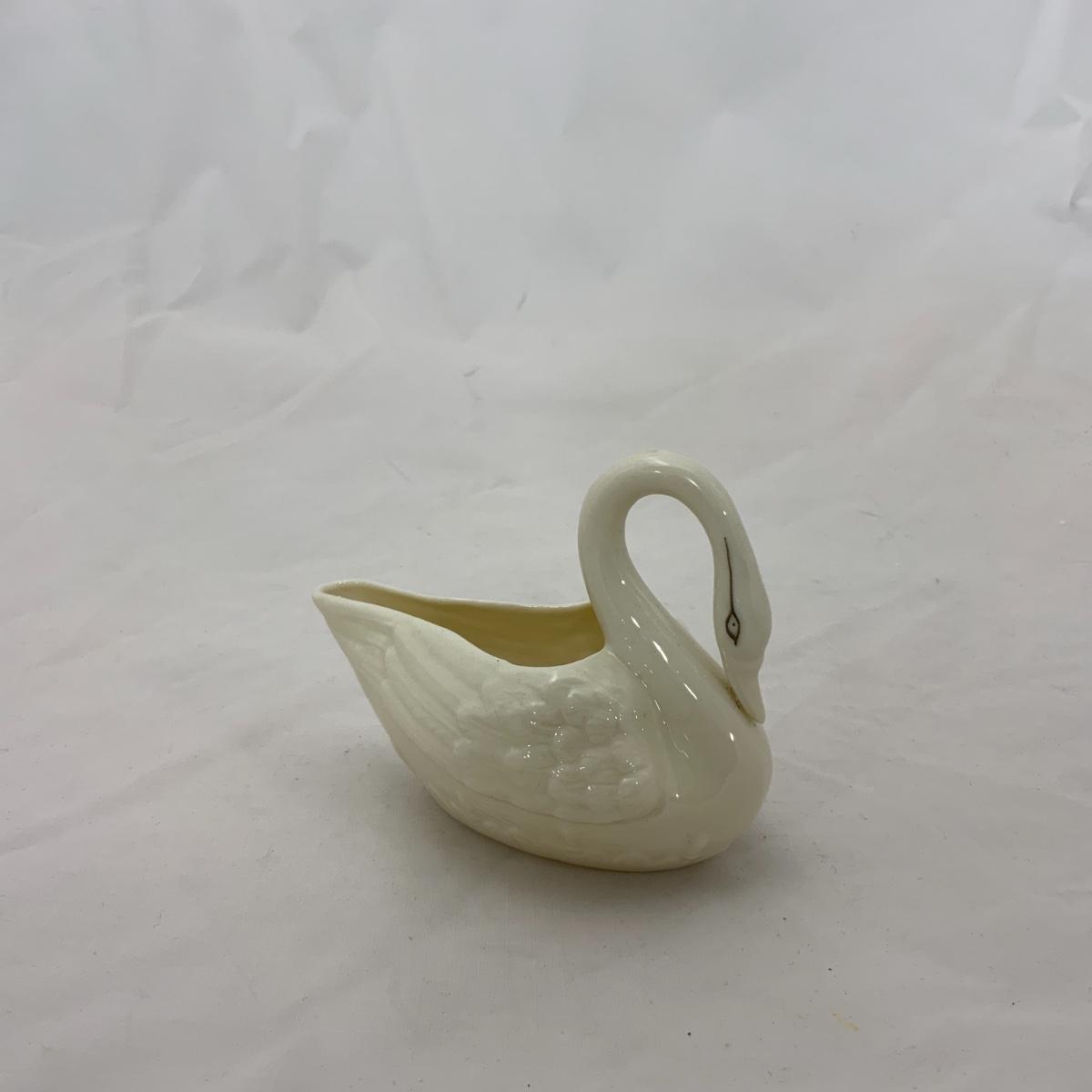 From the Estate of Peter and Alice Radovanovich: Beautiful Belleek Swan with an older mark on the bottom. Piece is in exceptional condition, with no cracks or chips noted. Please see photos for details and condition. ::: Shipping is available on this lot. If you require shipping you must let us know at the close of the auction. We will coordinate with you after the item has been won. Shipping fees will include insurance up to or exceeding the value of all items being mailed. If you have any questions regarding this lot please contact the auctioneer either via this website, by direct email or by phone. PICK UP TIMES and other important information can be found in the TERMS and DESCRIPTION of the auction. Please take a look for pertinent information. Thanks!