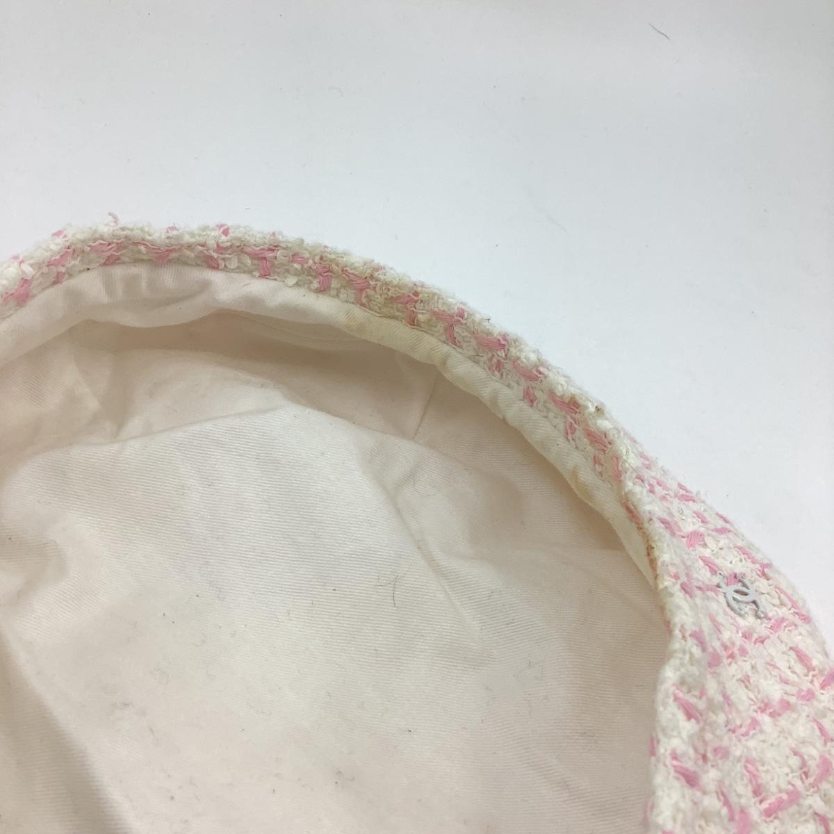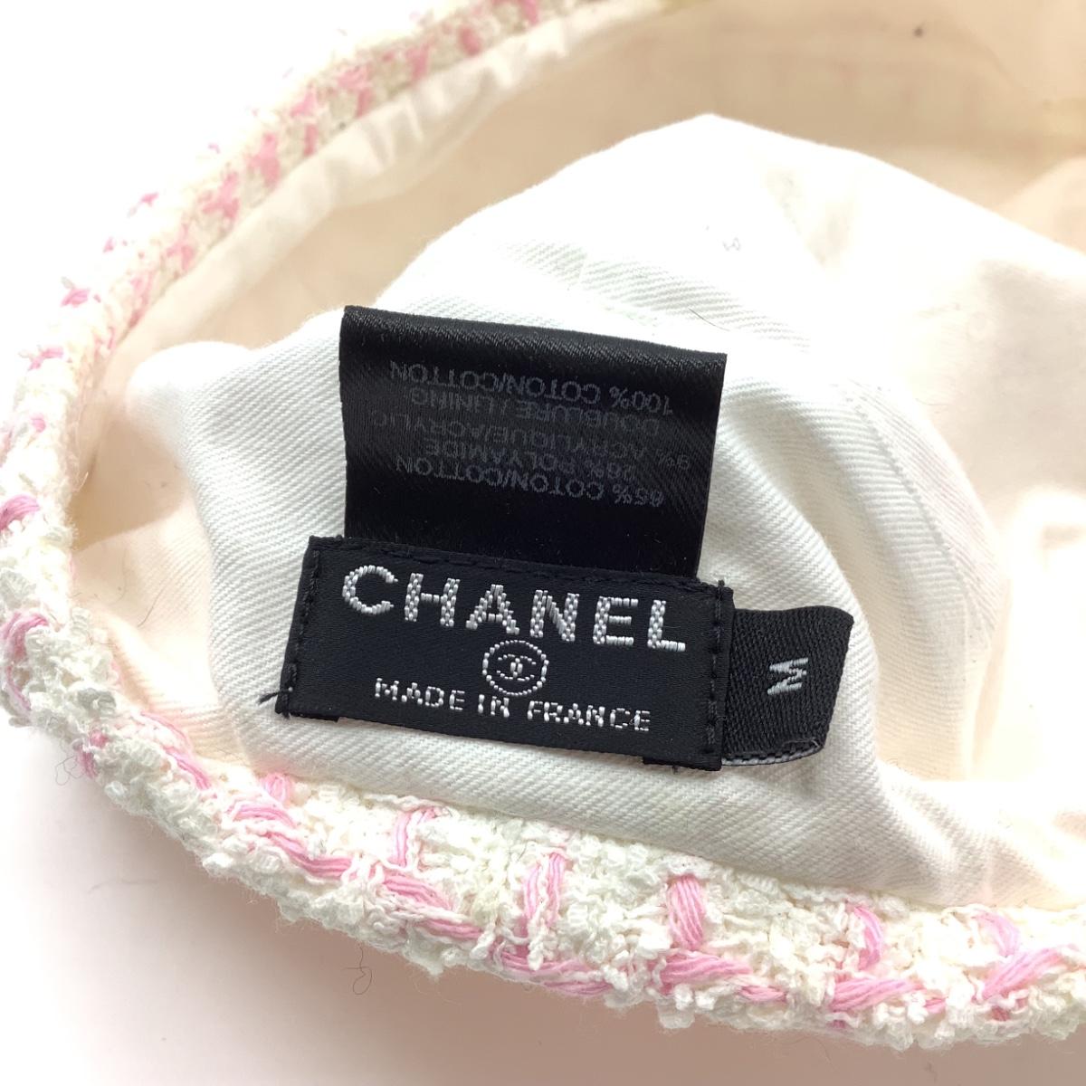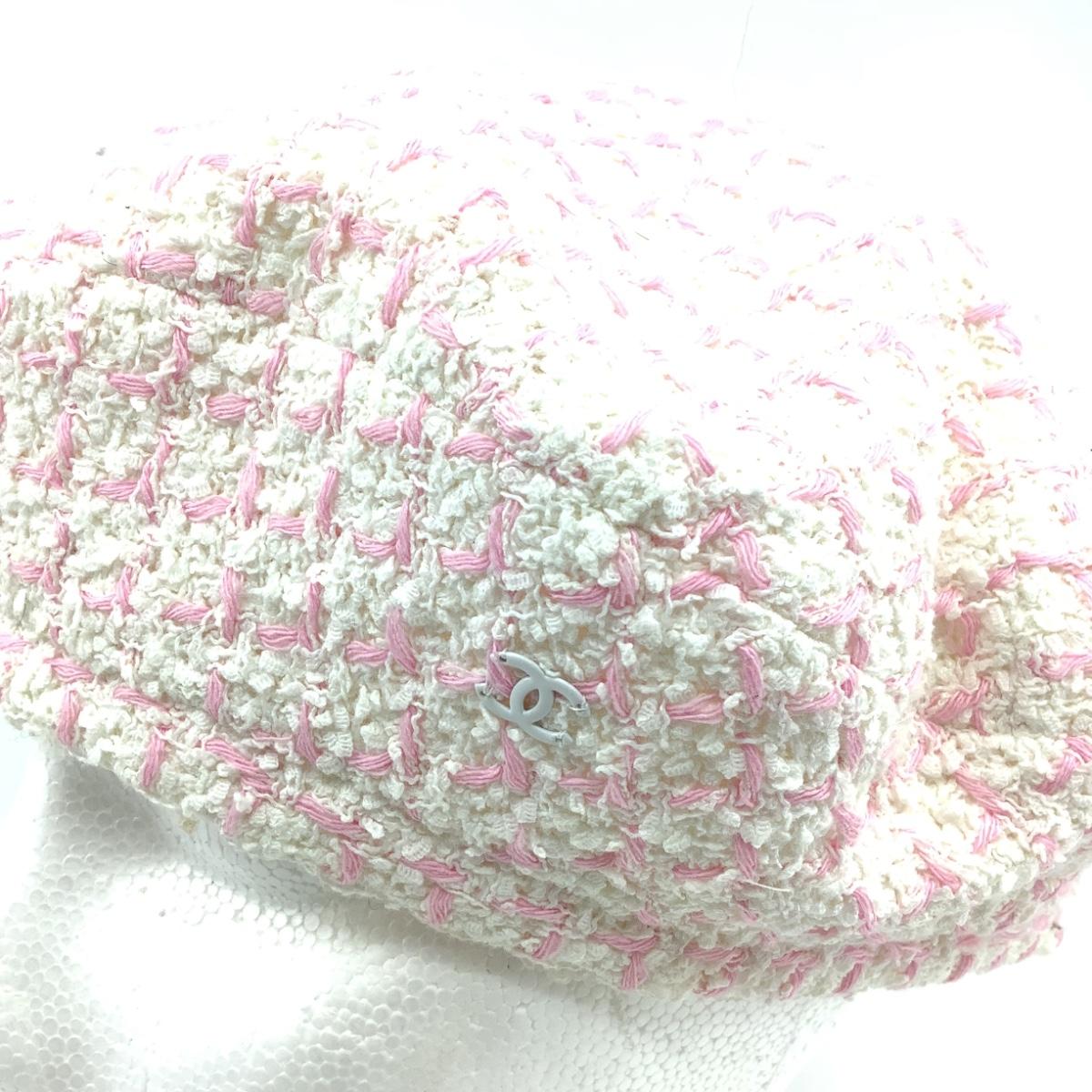 198 CHANEL Cream White & Pink Cashmere Beret Size M