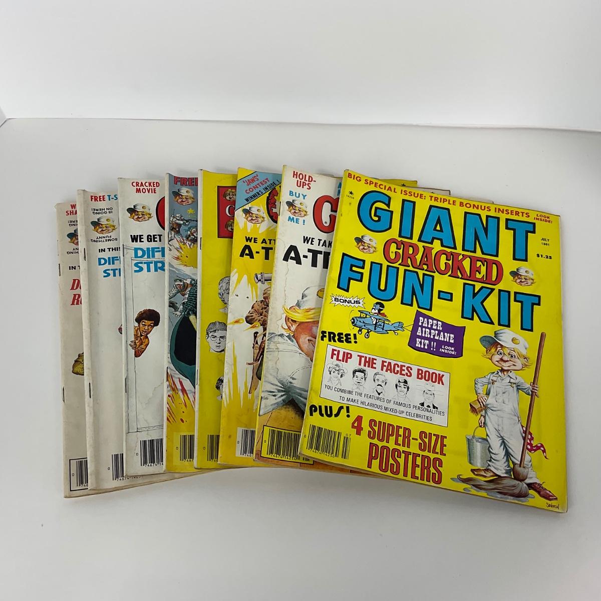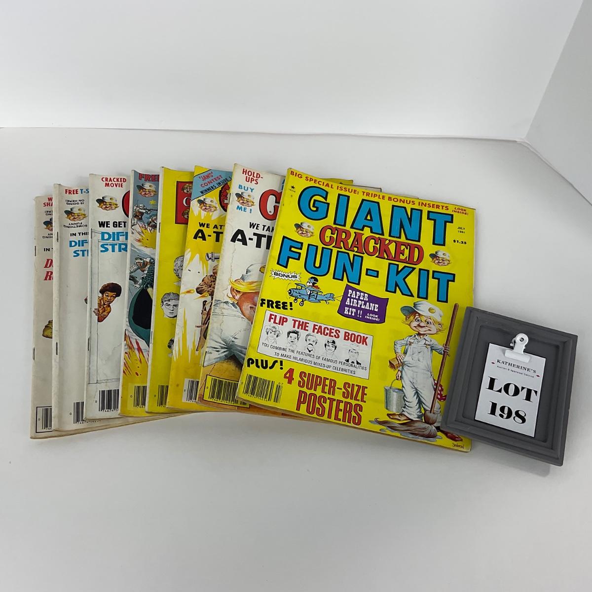 Eight vintage 1980’s Cracked magazines, these pieces do have some damage. Please see photos for details and condition. ::: Shipping is available on this lot. If you require shipping you must let us know at the close of the auction. We will coordinate with you after the item has been won. Shipping fees will include insurance up to or exceeding the value of all items being mailed. If you have any questions regarding this lot please contact the auctioneer either via this website, by direct email or by phone. PICK UP TIMES and other important information can be found in the TERMS and DESCRIPTION of the auction. Please take a look for pertinent information. Thanks!