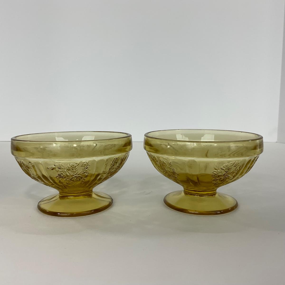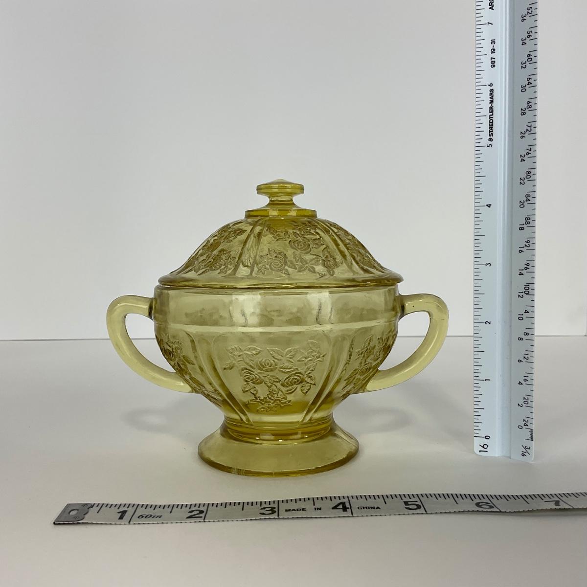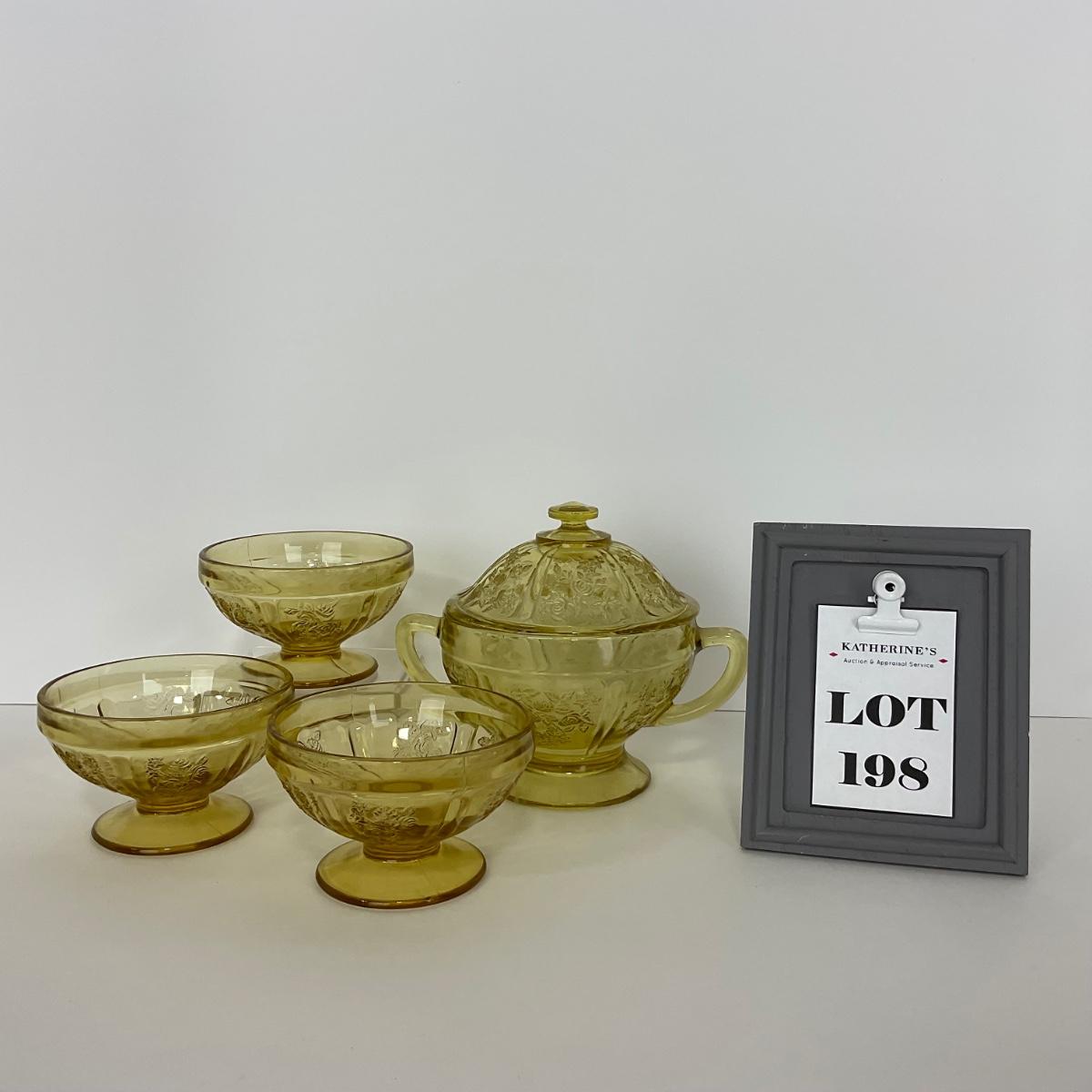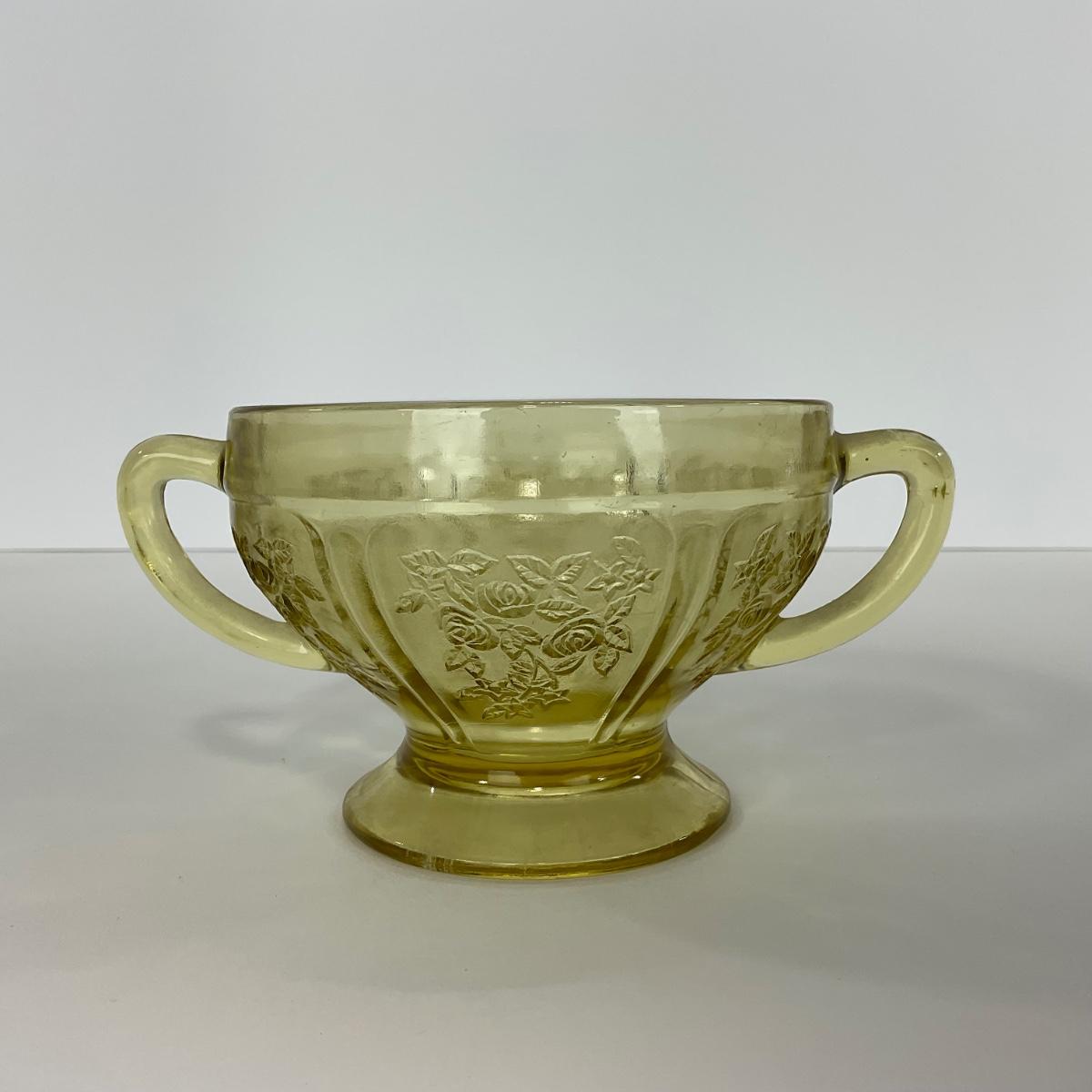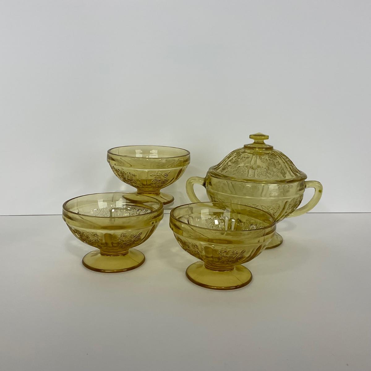 -198- GLASSWARE | Yellow Sharon Cabbage Rose Federal Glass Co. | Sherbets & Lidded Sugar