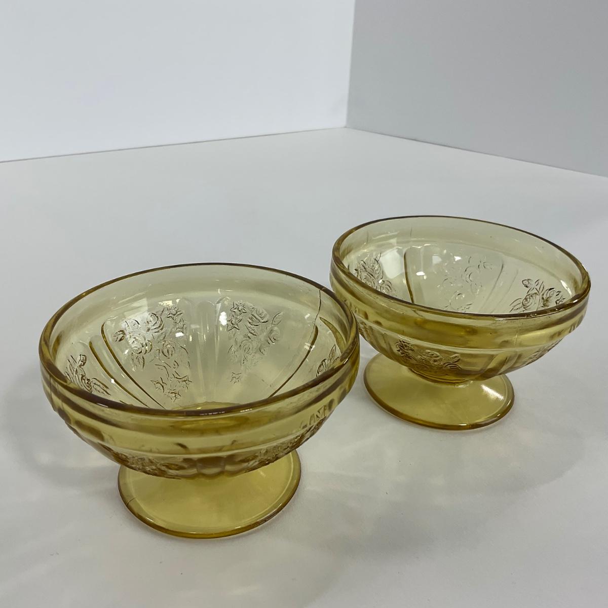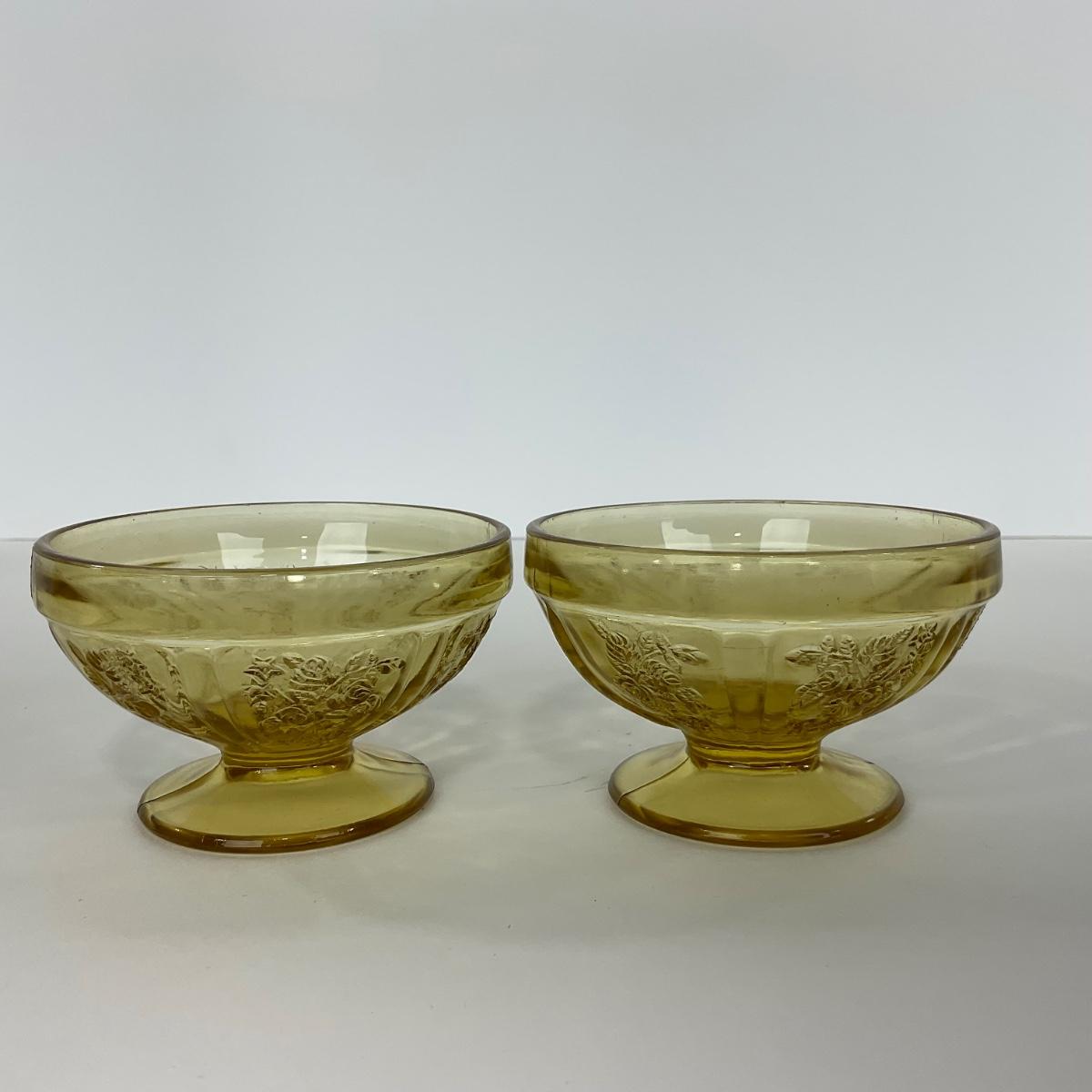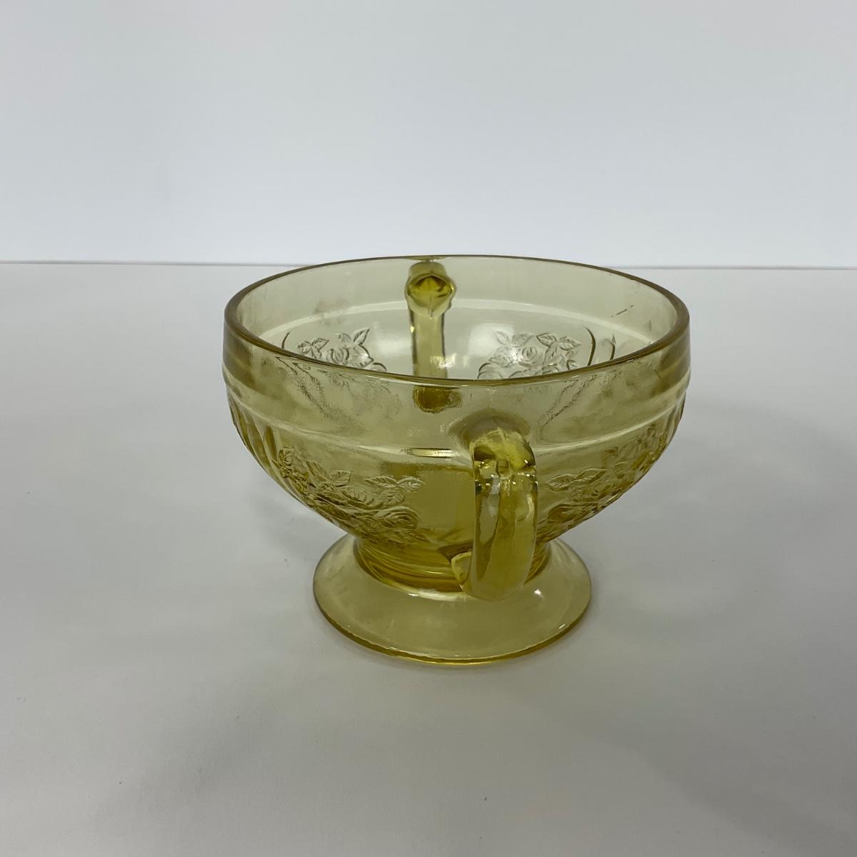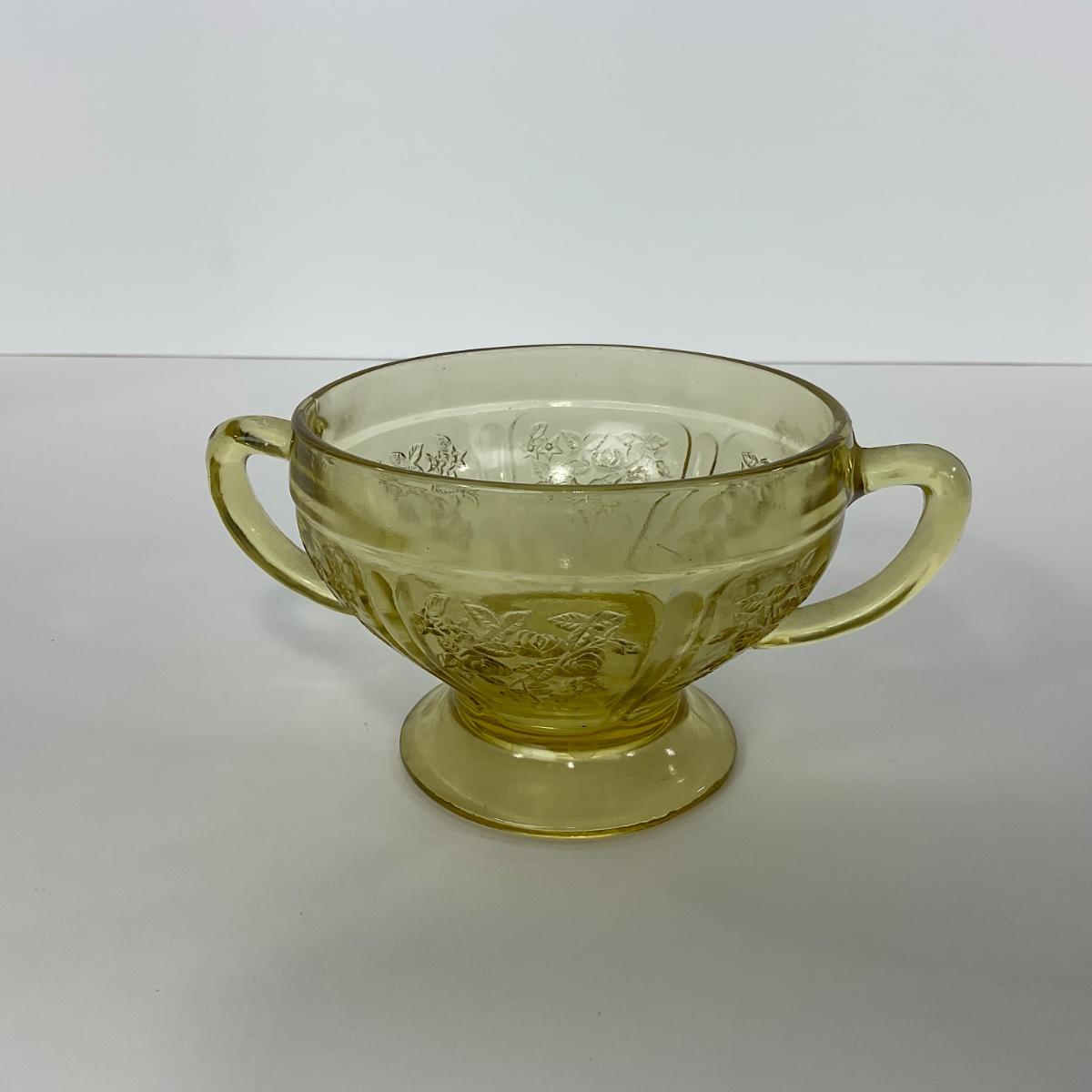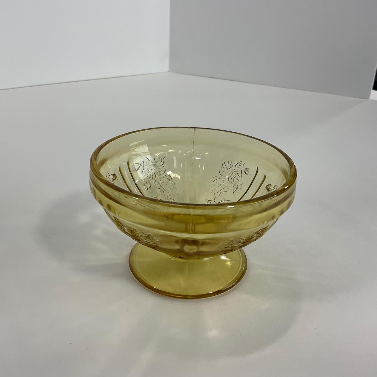 -198- GLASSWARE | Yellow Sharon Cabbage Rose Federal Glass Co. | Sherbets & Lidded Sugar