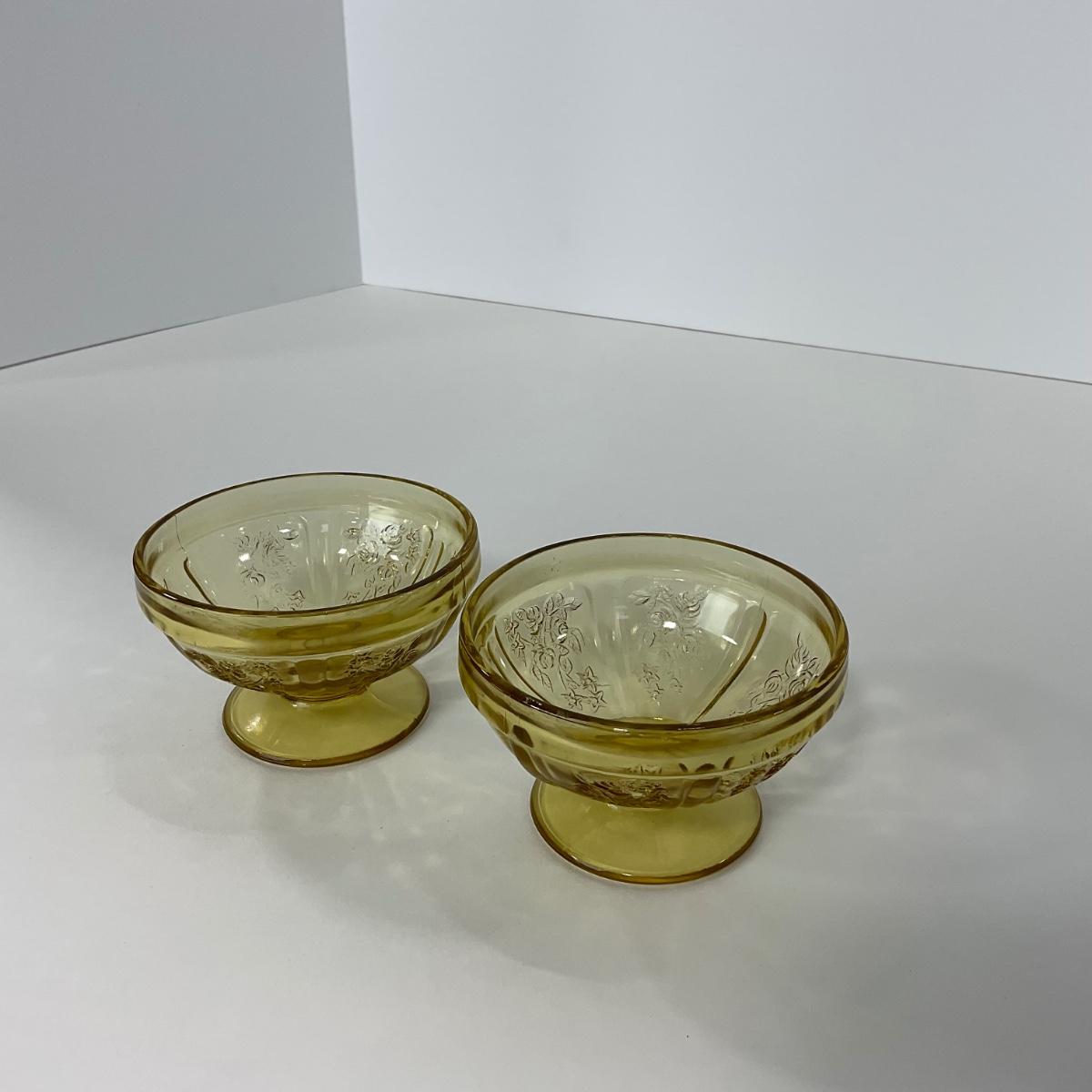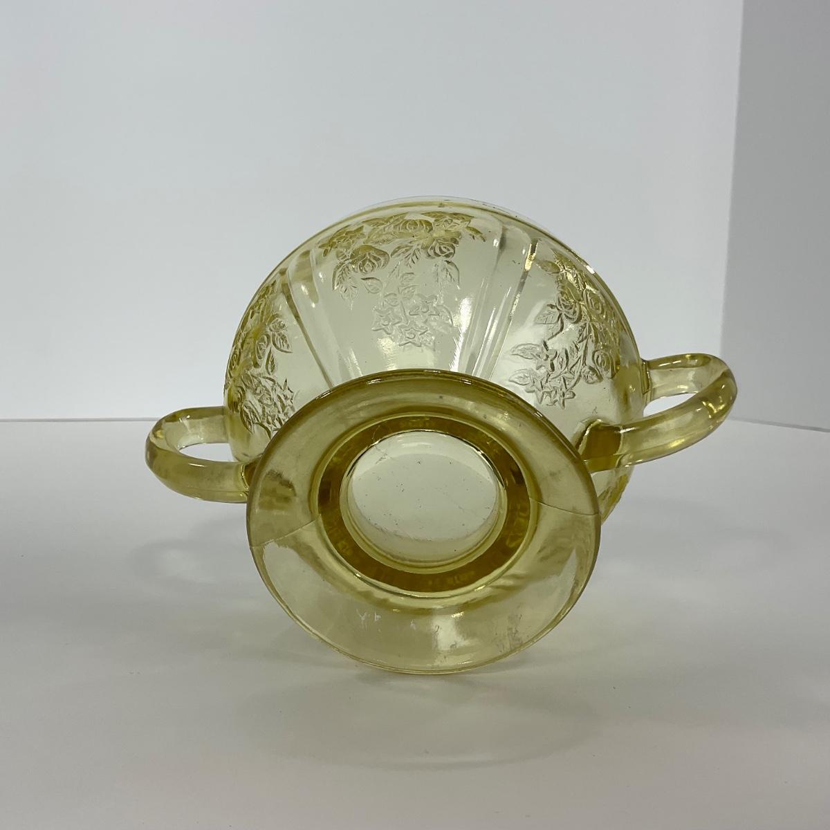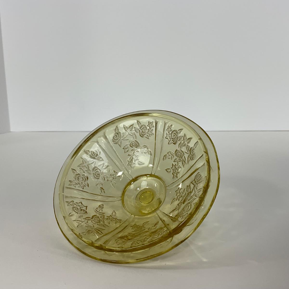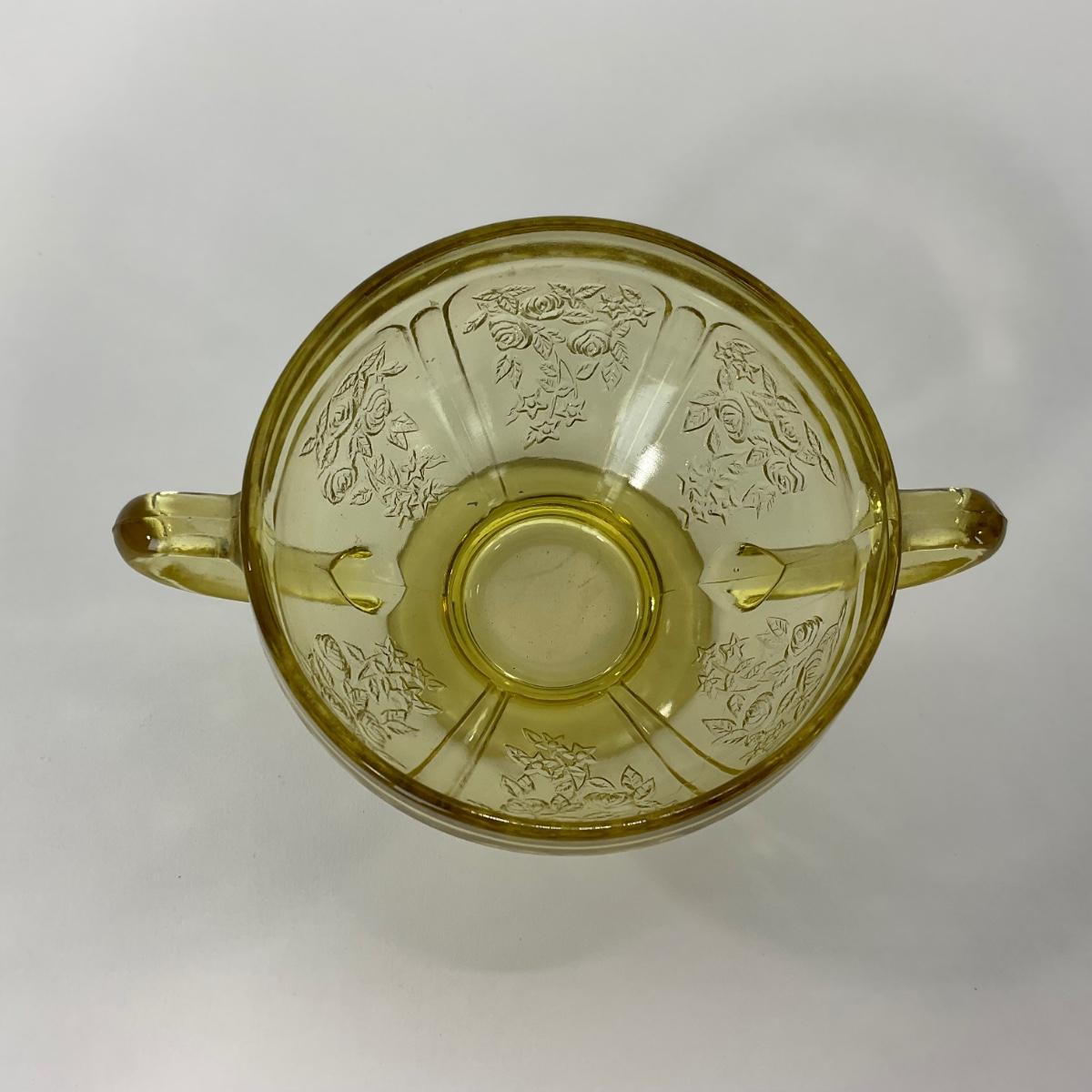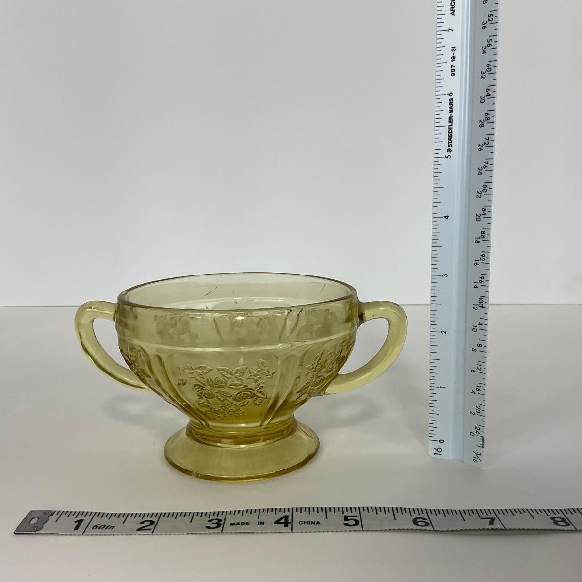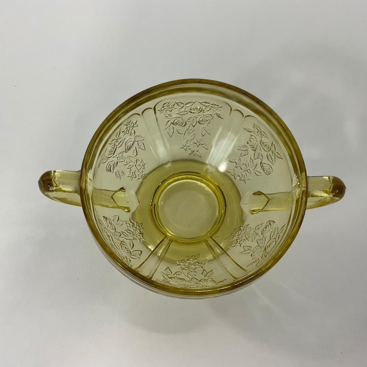 -198- GLASSWARE | Yellow Sharon Cabbage Rose Federal Glass Co. | Sherbets & Lidded Sugar