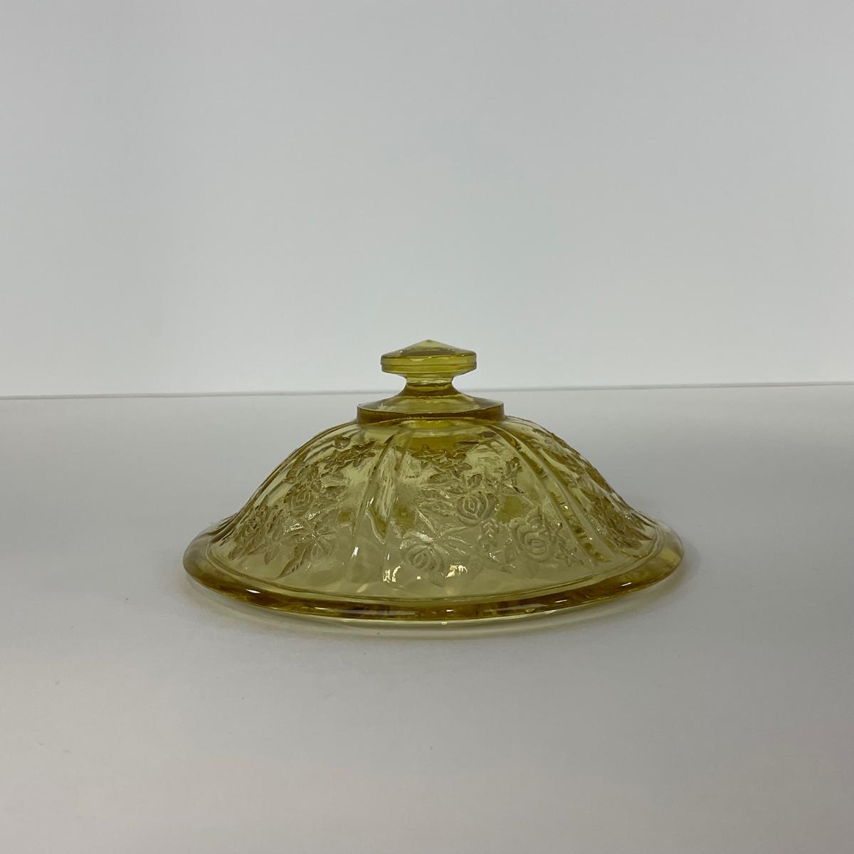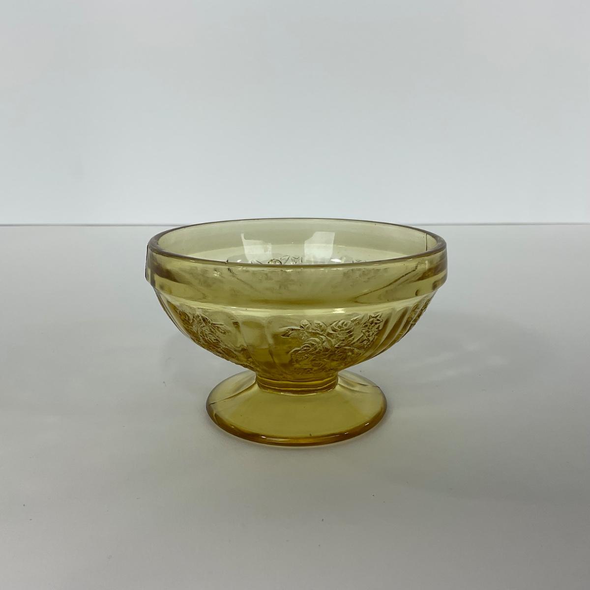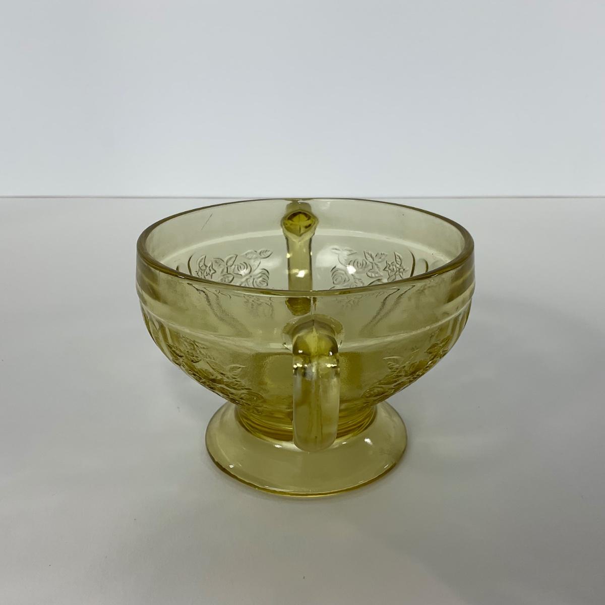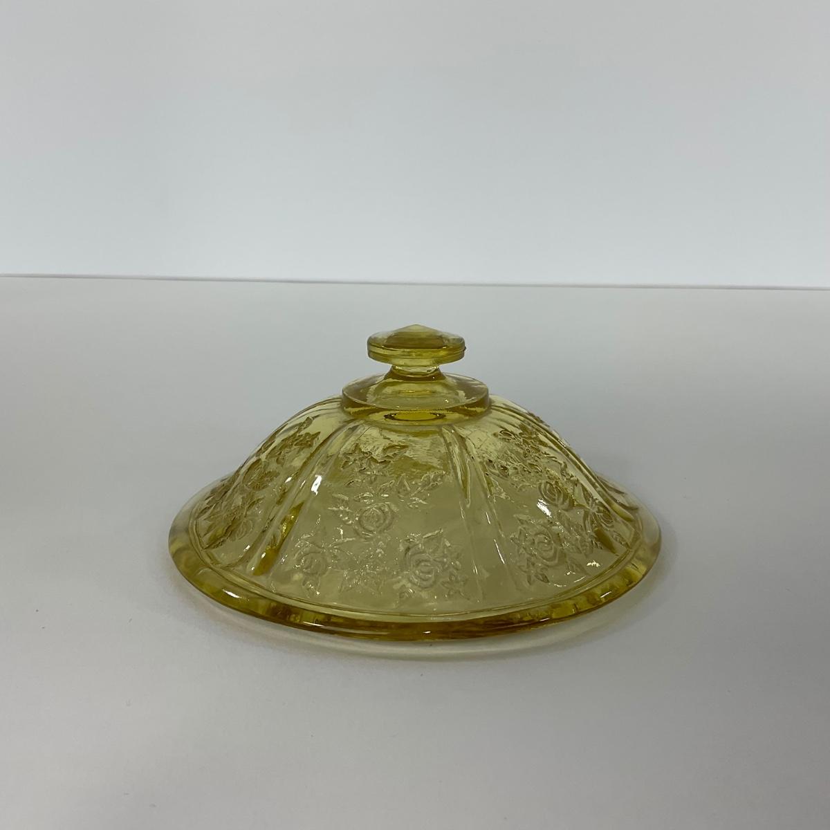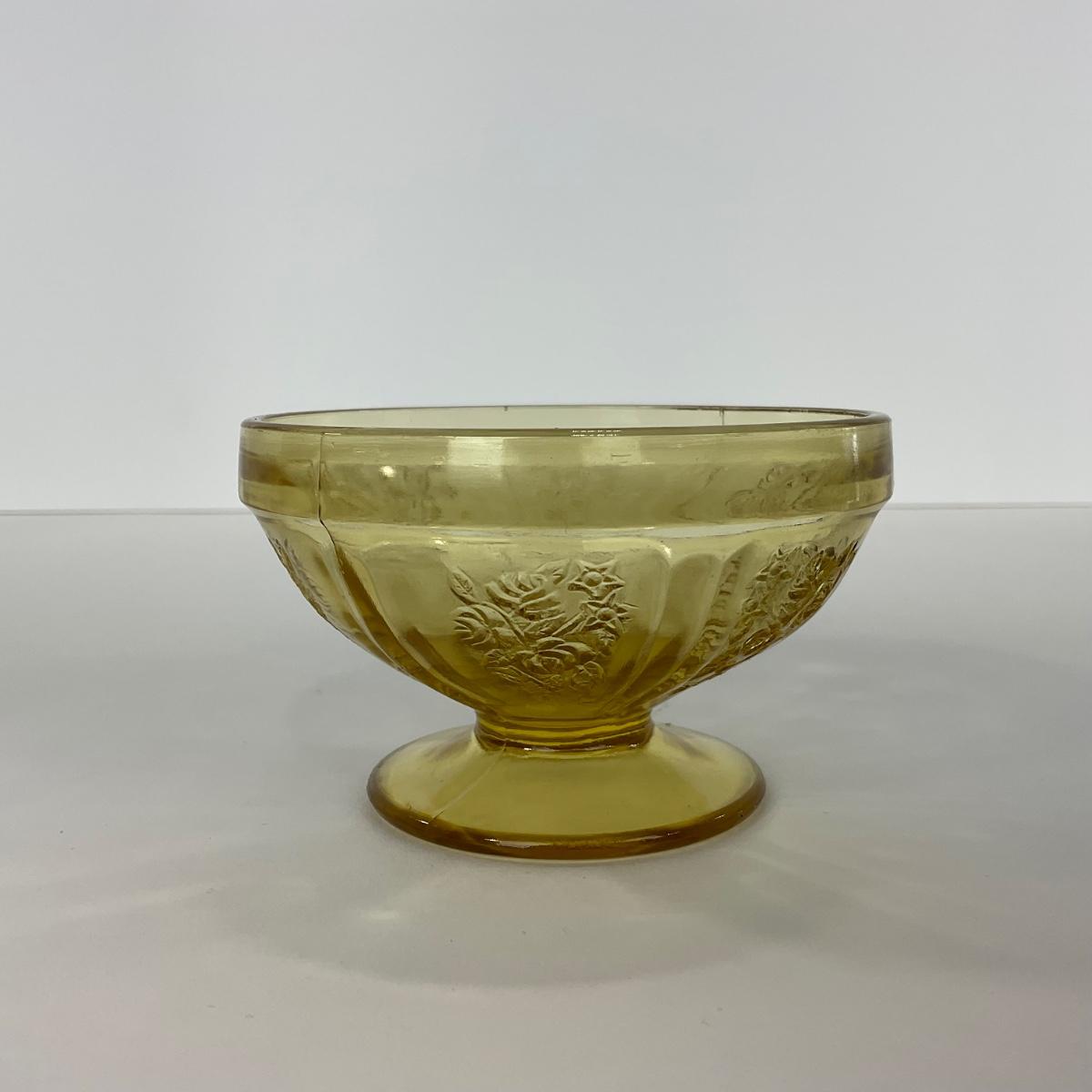 -198- GLASSWARE | Yellow Sharon Cabbage Rose Federal Glass Co. | Sherbets & Lidded Sugar