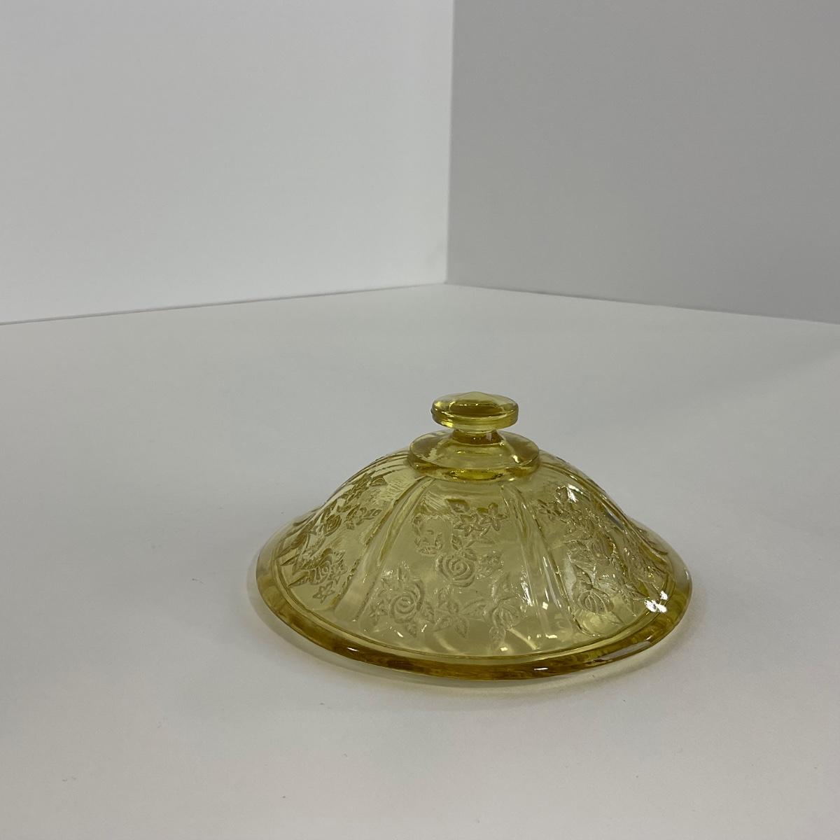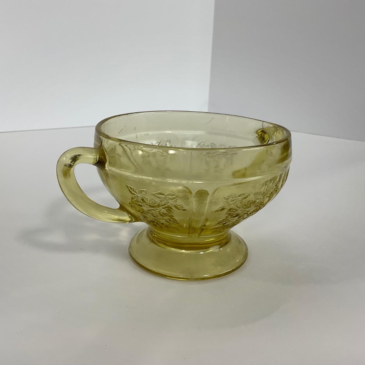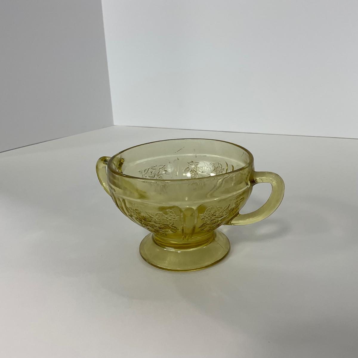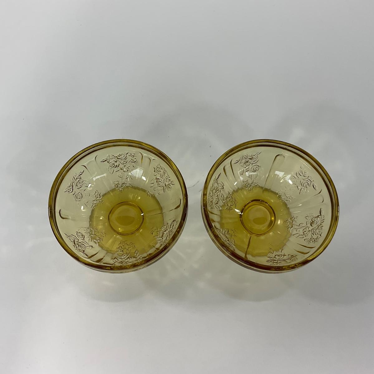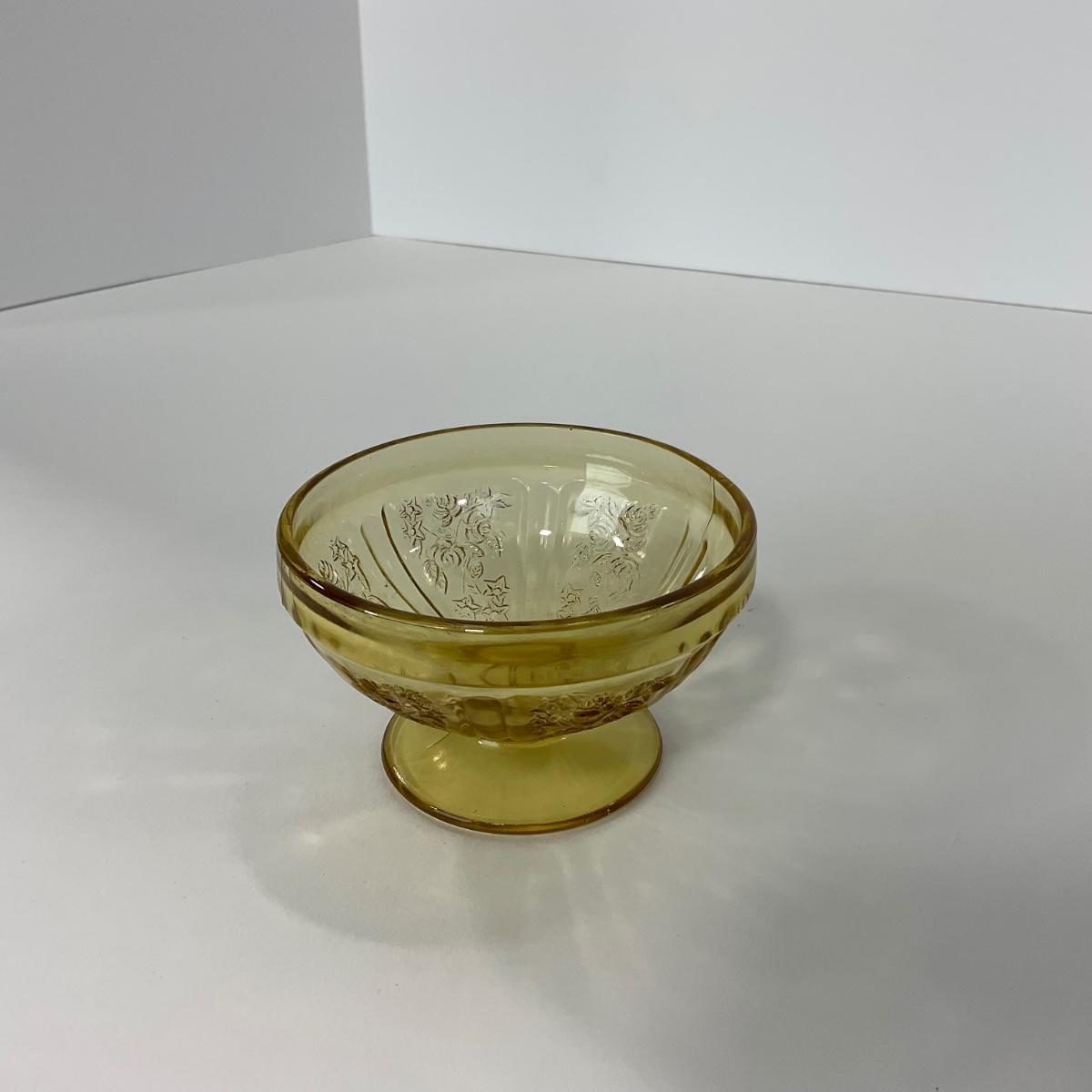 -198- GLASSWARE | Yellow Sharon Cabbage Rose Federal Glass Co. | Sherbets & Lidded Sugar