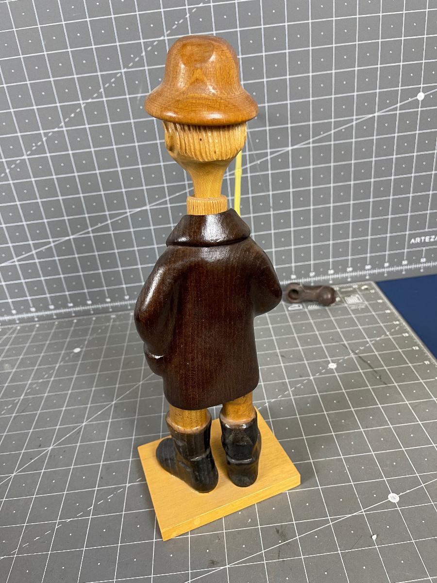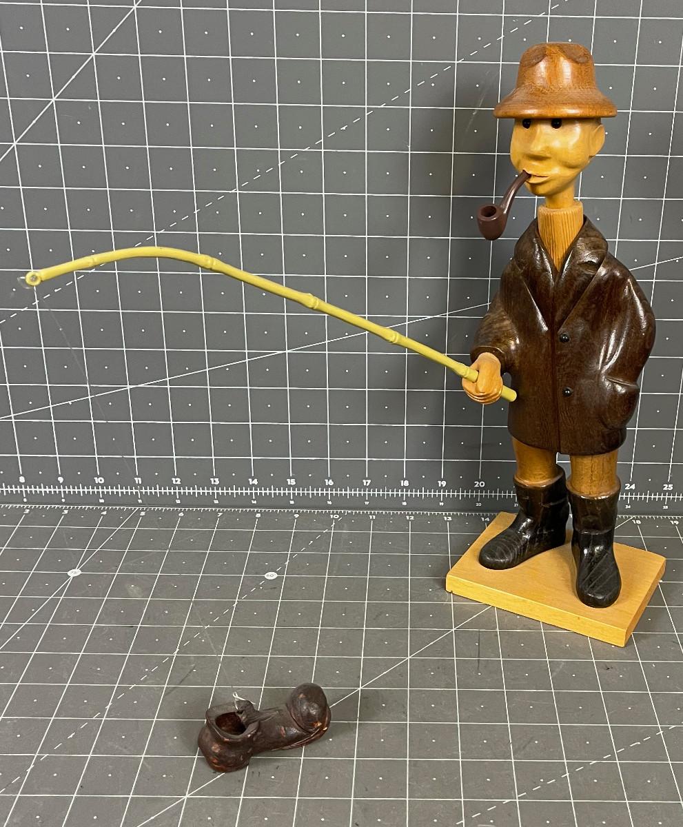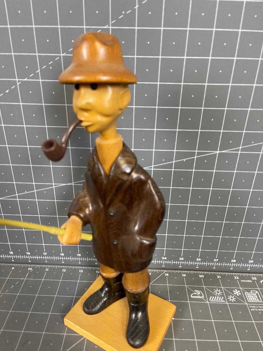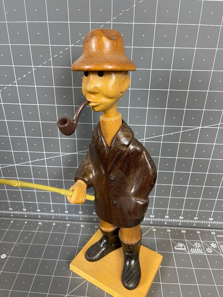#198 Hand Carved Fisher Man, Wood