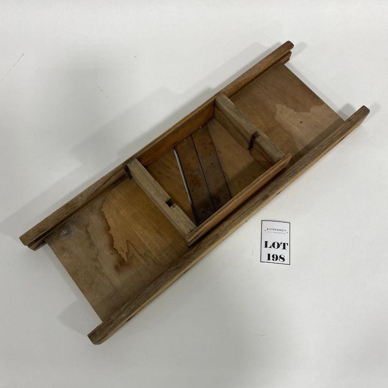 A Classic Kraut Cutter - Still Sharp! Measures 25" x 8.75" Original Box, great patina. Shine up those blades and get 'er running again!