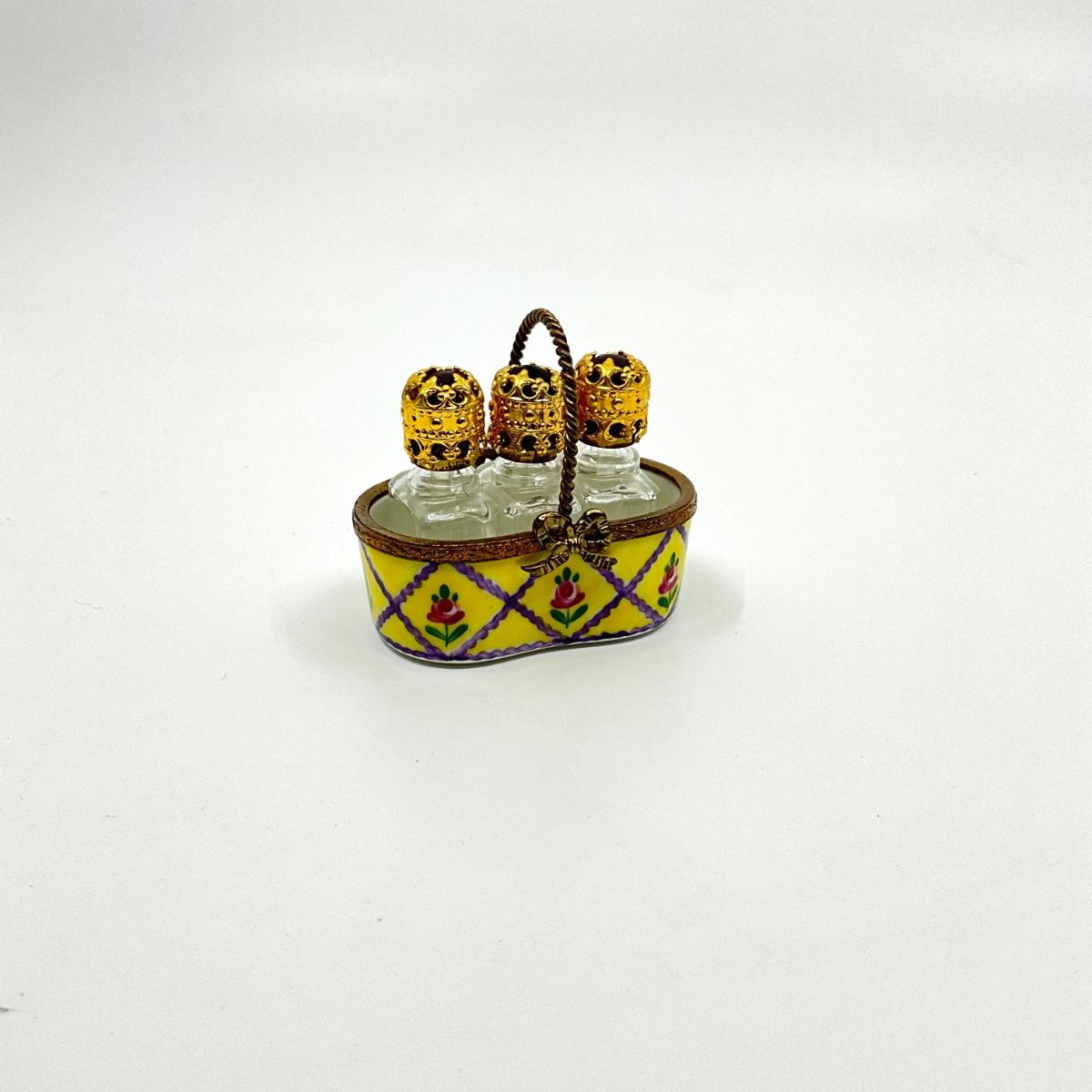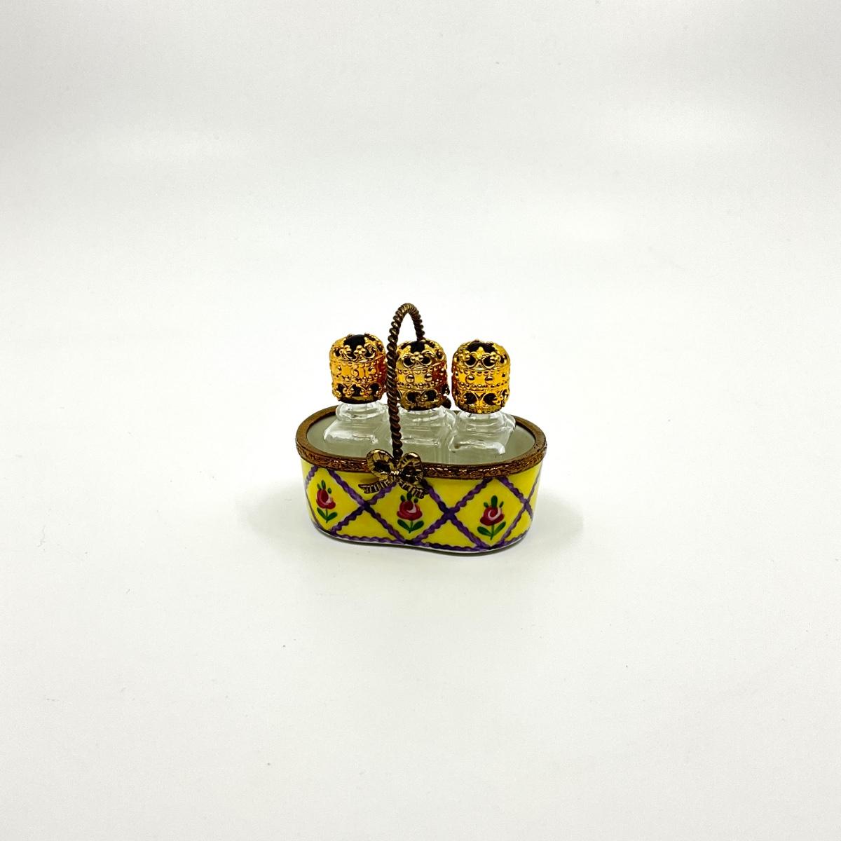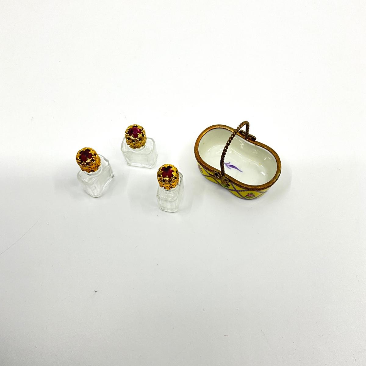 198 Limoges France Olong Perfume Bottles Basket Versailles Porcelain Box