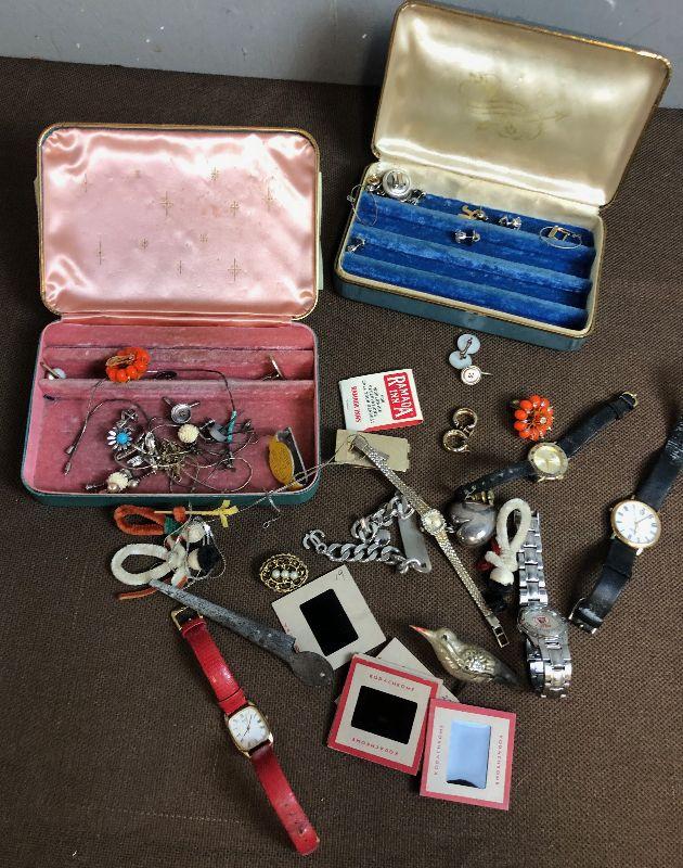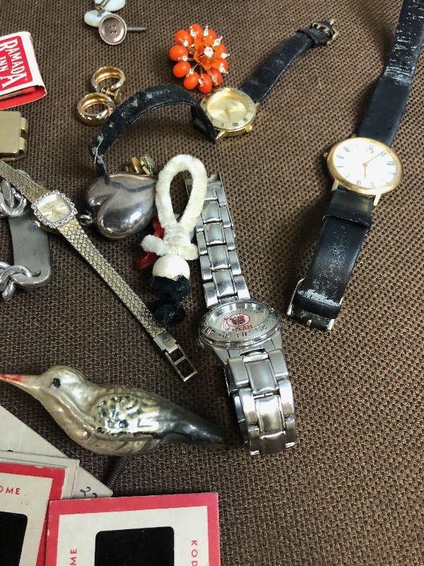 Watches, pins, earrings, bracelet. Etc.