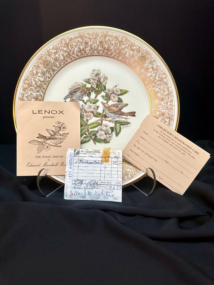 Vintage Lenox limited edition designer plate from the Boehm Bird collection series. Bone china trimmed in 24k gold, this beautiful collector’s piece is based on the artist Edward Marshall Boehm. Original box and certificate, 10 ¾”
