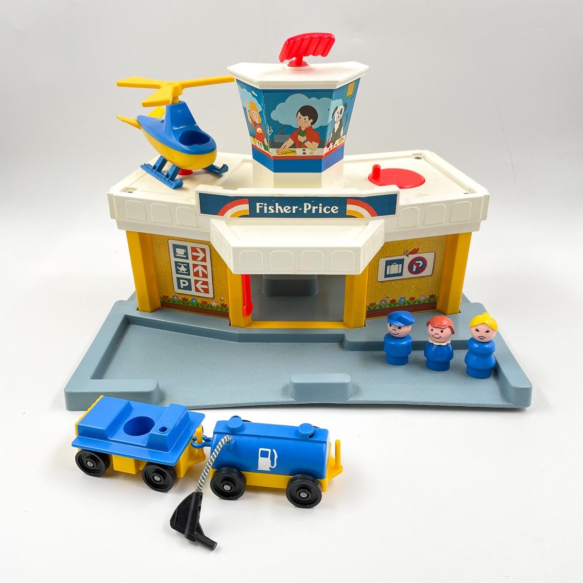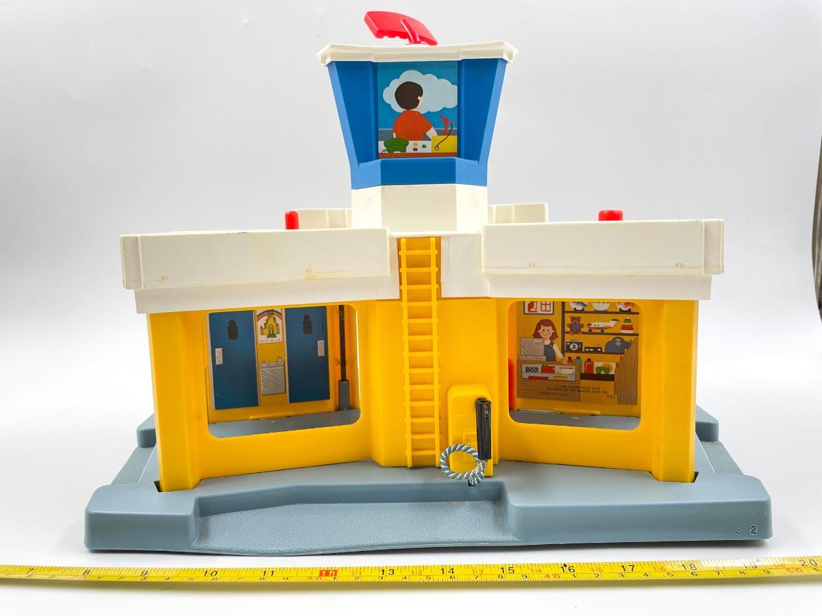 1980 FISHER PRICE LITTLE PEOPLE AIRPORT W/ 6 ACCESSORIES