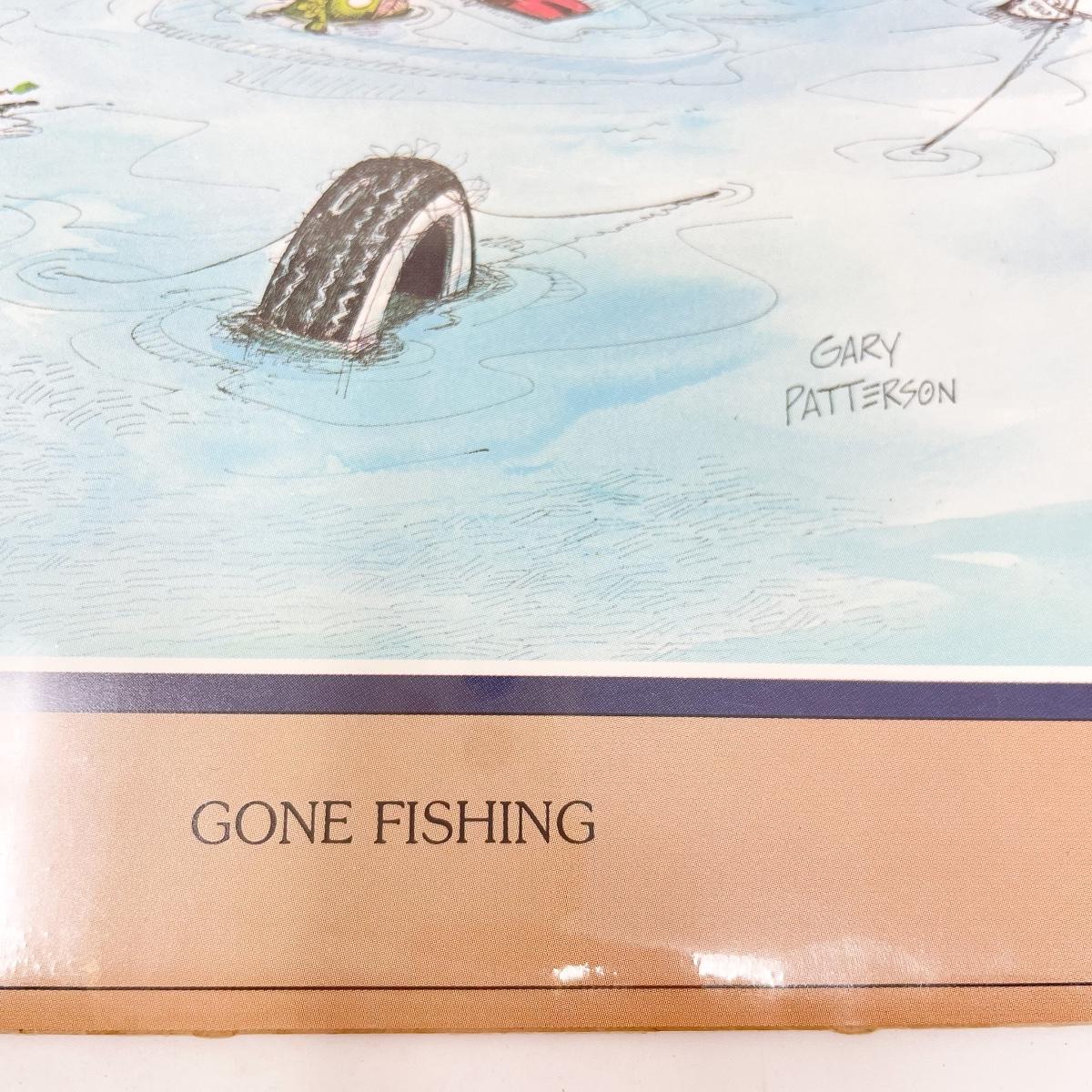1980 GARY PATERSON “GONE FISHING” CARTOON PRINT - 8” X 10”