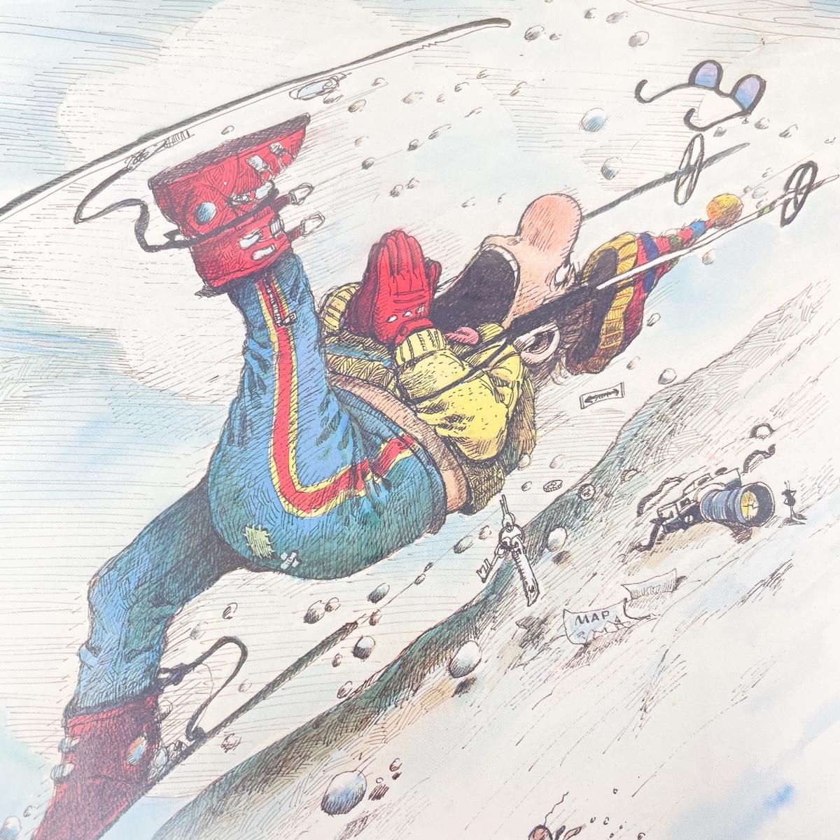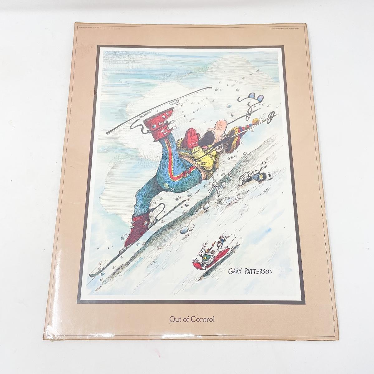 1980 GARY PATTERSON “OUT OF CONTROL” CARTOON SKI PRINT - 11” X 14”