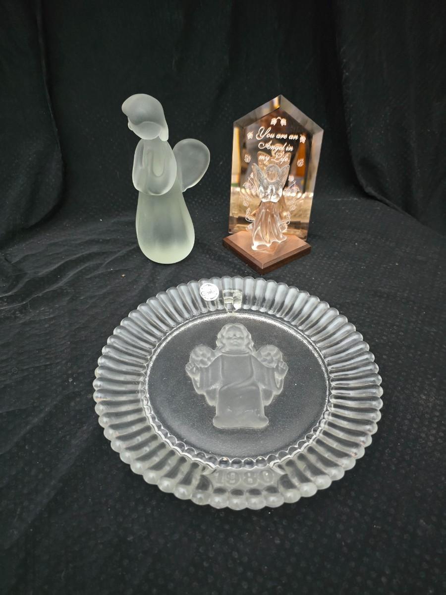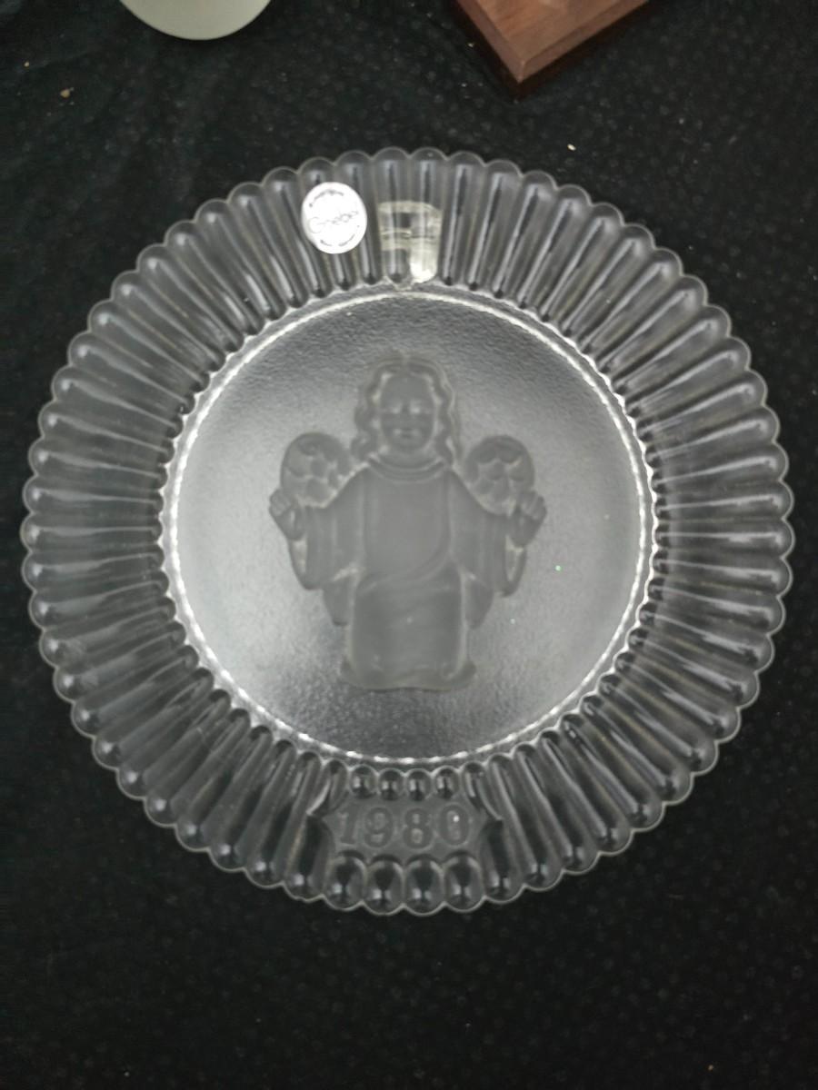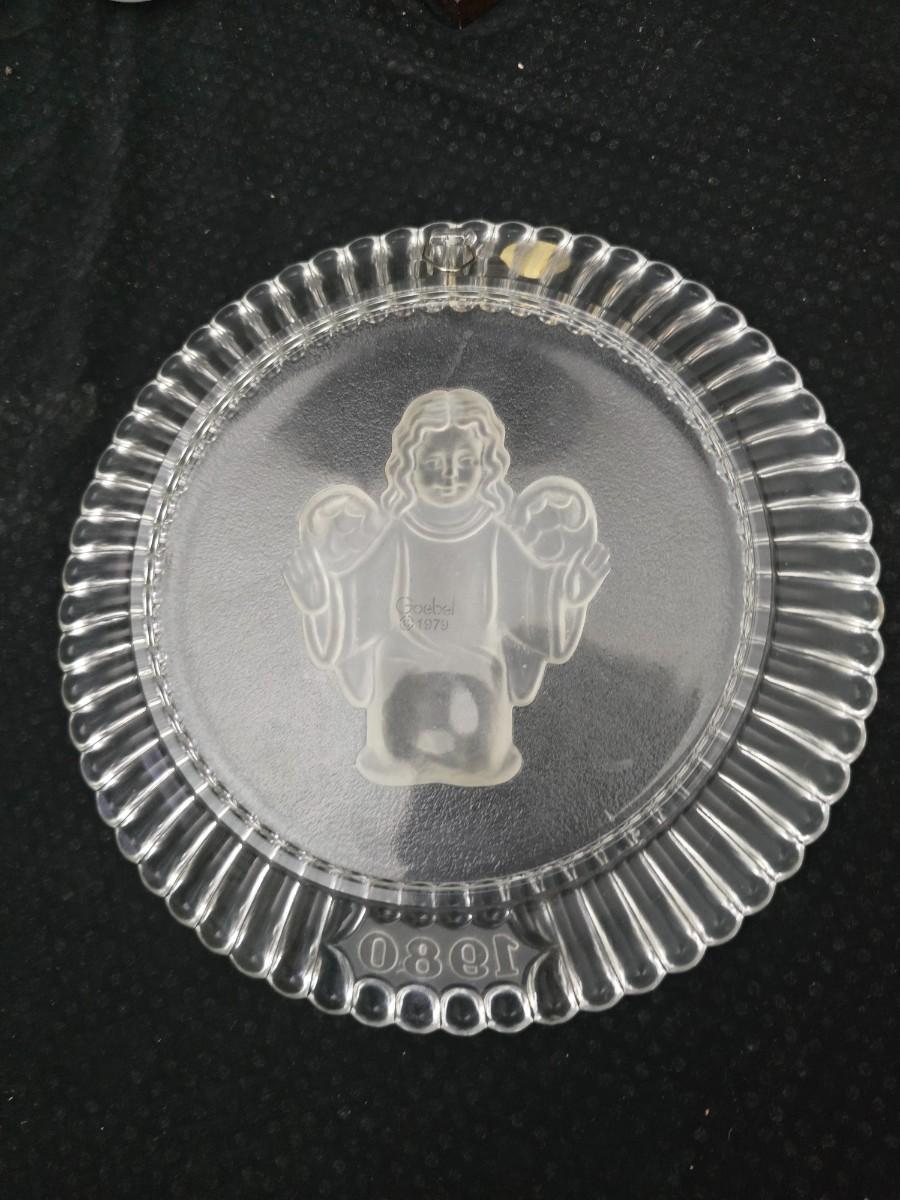 1980 Goebel Annual Crystal Glass Collector Plate featuring an angel design with two glass angel figurines