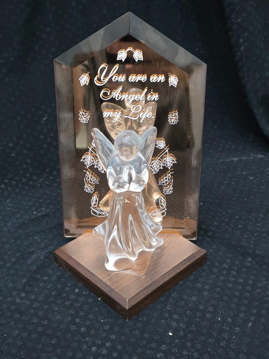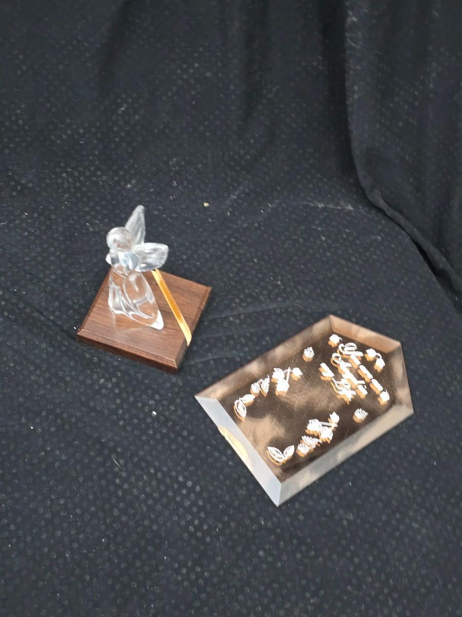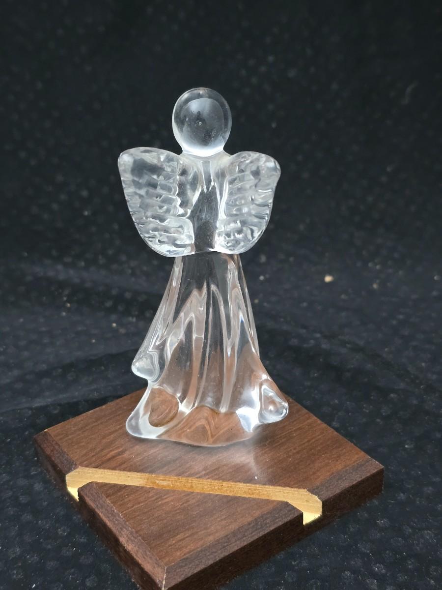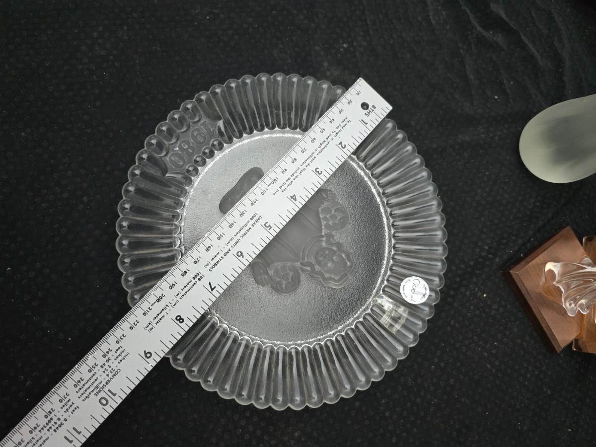 1980 Goebel Annual Crystal Glass Collector Plate featuring an angel design with two glass angel figurines