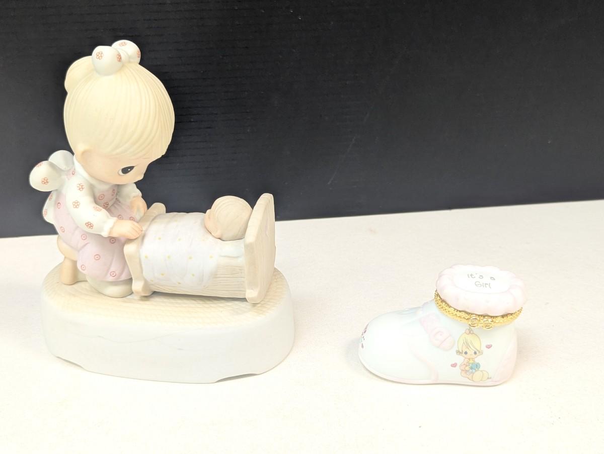 "1980 Jonathan & David" The Original Precious Moments Figurine & Baby Shoe Trinket Box No Boxes
