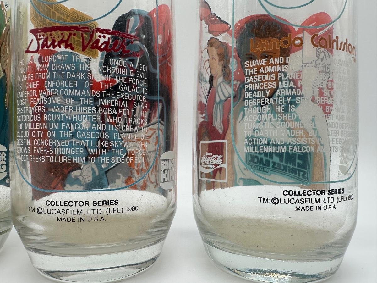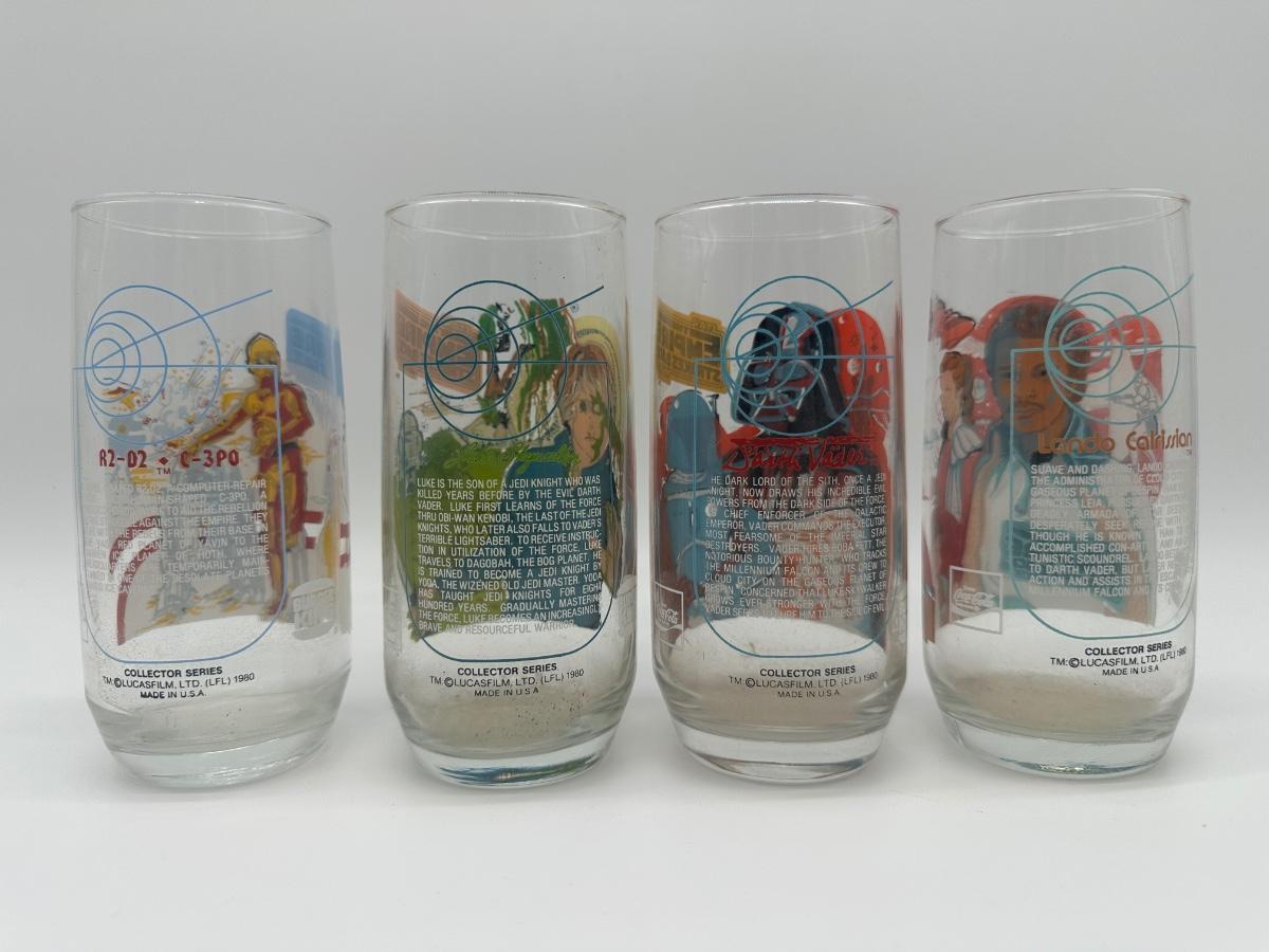 Set of four 1980 “The Empire Strikes Back” collector drinking glasses. Marked TM © Lucasfilm Ltd. 1980, Made in U.S.A.