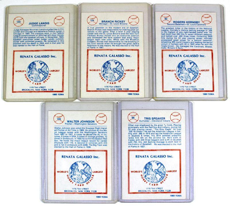 1980 TCMA Baseball Cards Set WALTER JOHNSON Landis, Rickey, Roger Hornsby TRIS SPEAKER