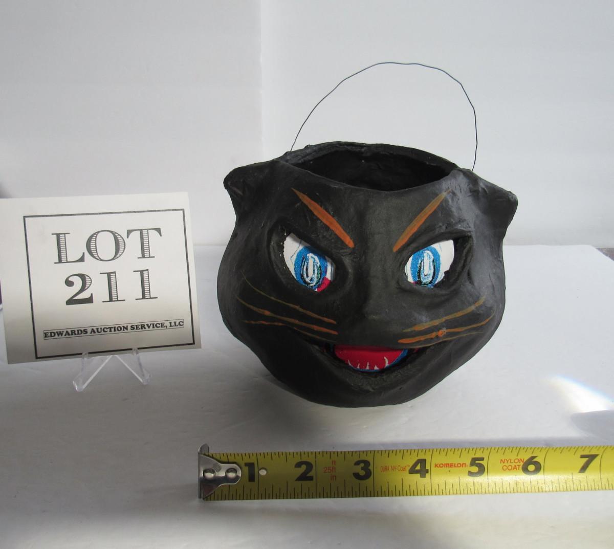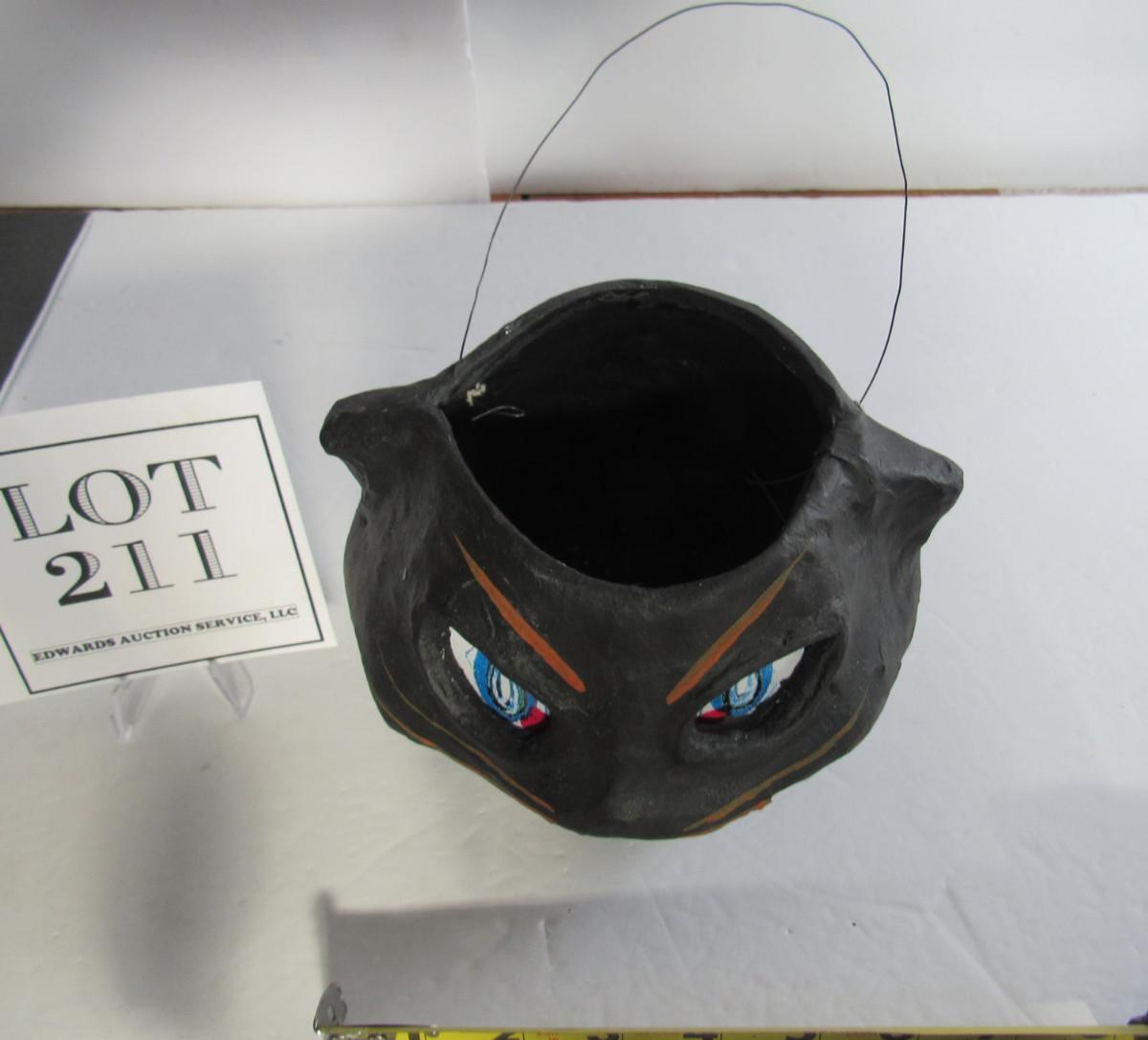 Thick mache material with paper insert, reproduction in good shape but just does not have the quality of the old. Unsigned. Shipping is available at cost plus $5.00 per box handing and supply fee. See our terms for details. All sales final.