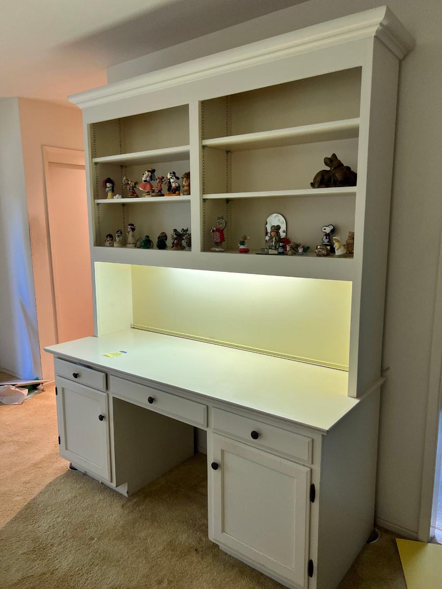 1980s Bookcase desk with underlighting and power strip