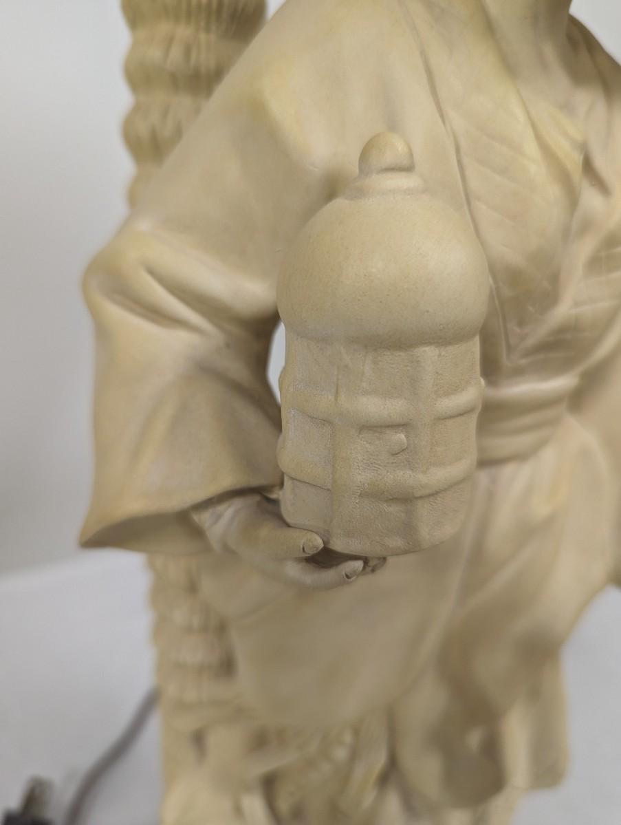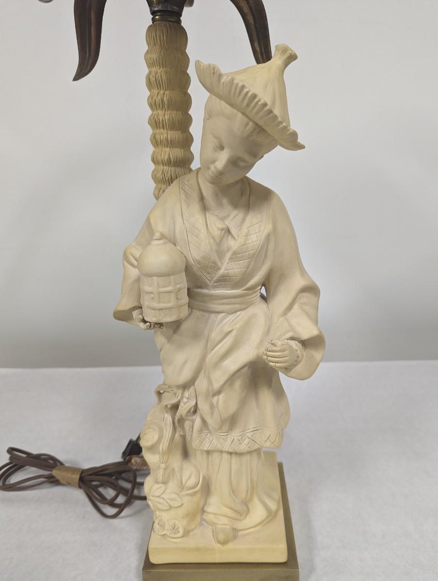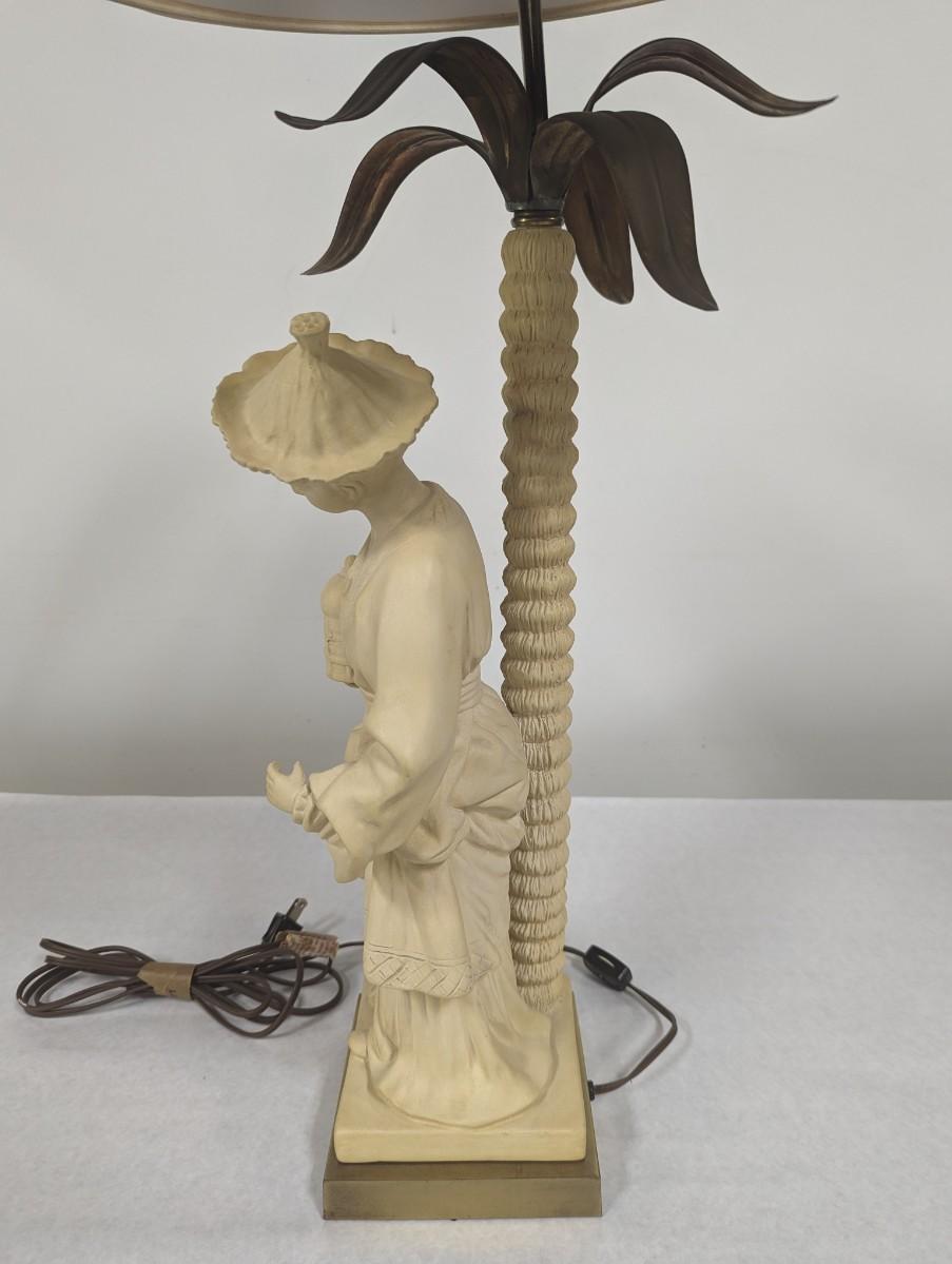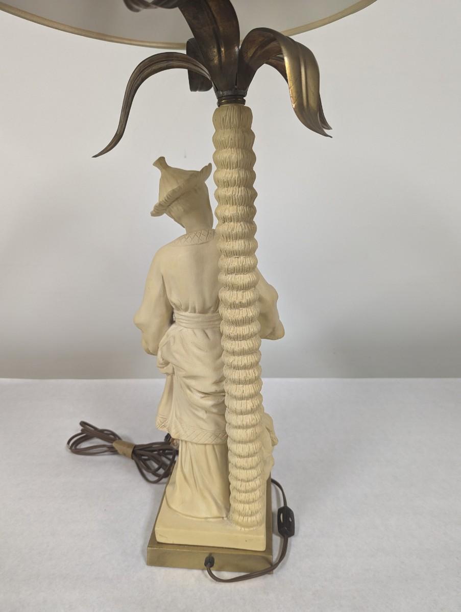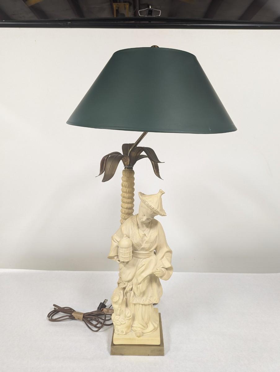 1980's Chapman Chinoiserie Ceramic Brass & Bronze Figural Table Lamp