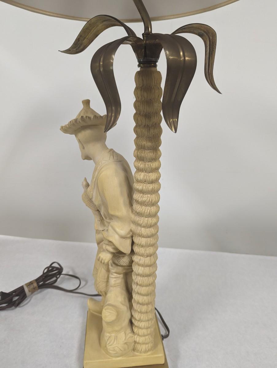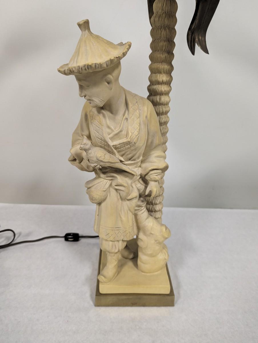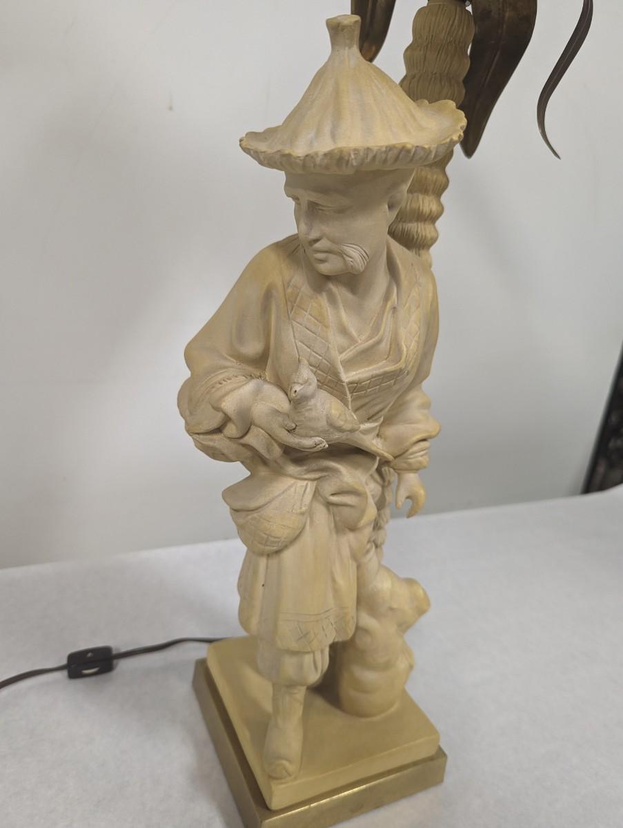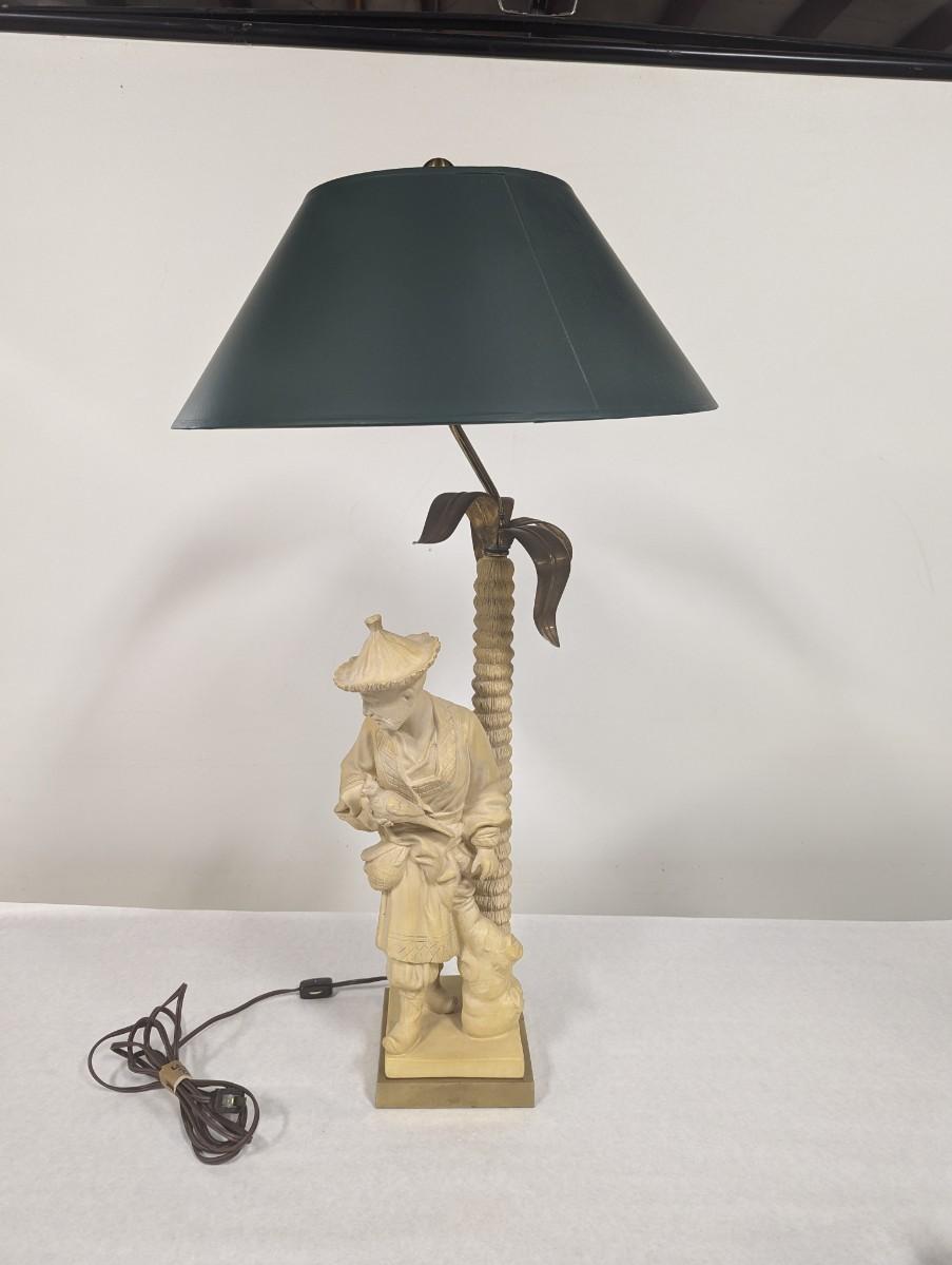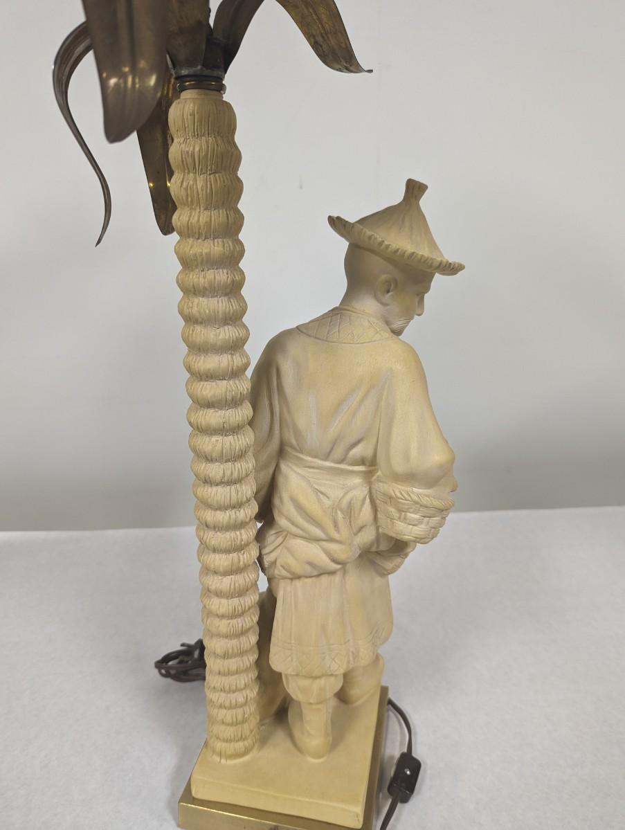 1980's Chapman Chinoiserie Ceramic Brass & Bronze Figural Table Lamp