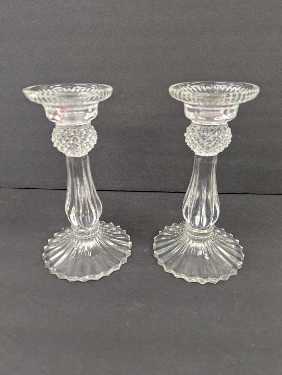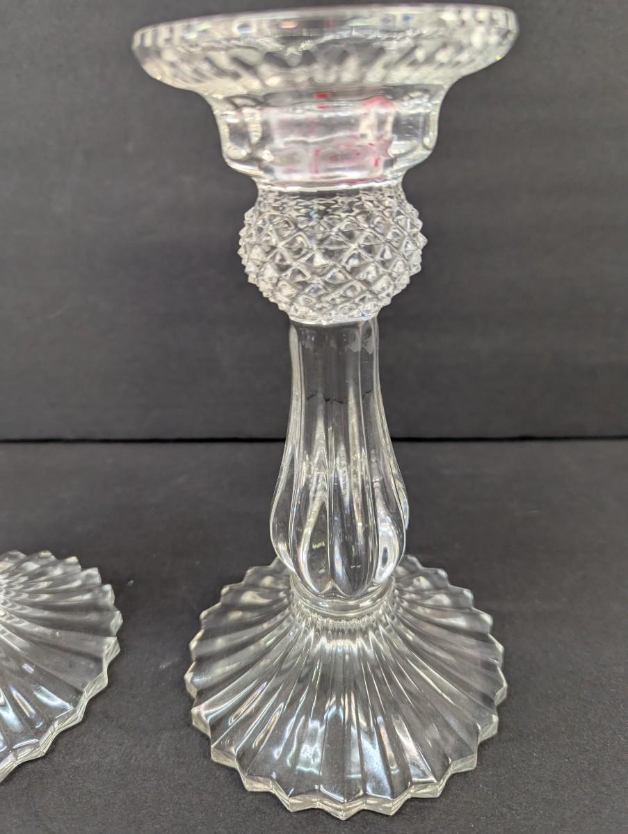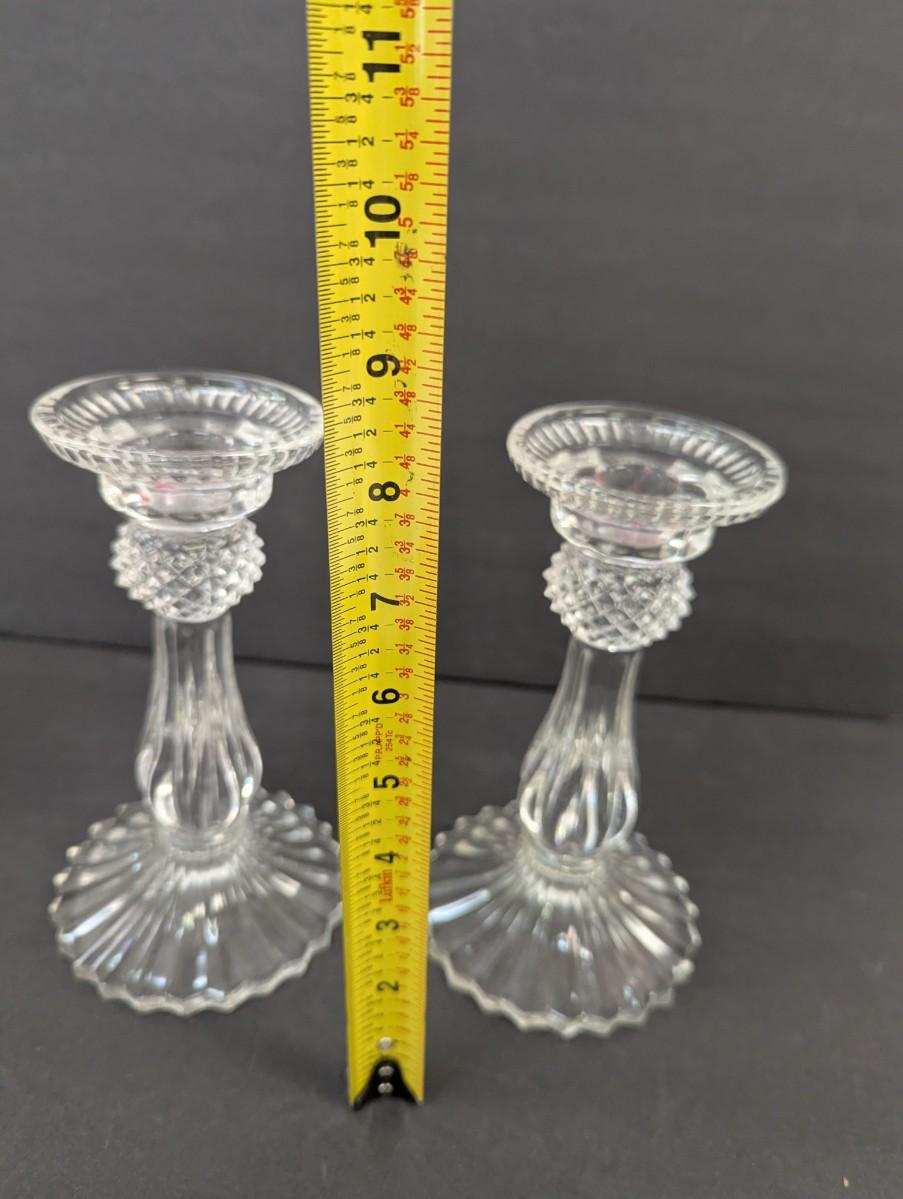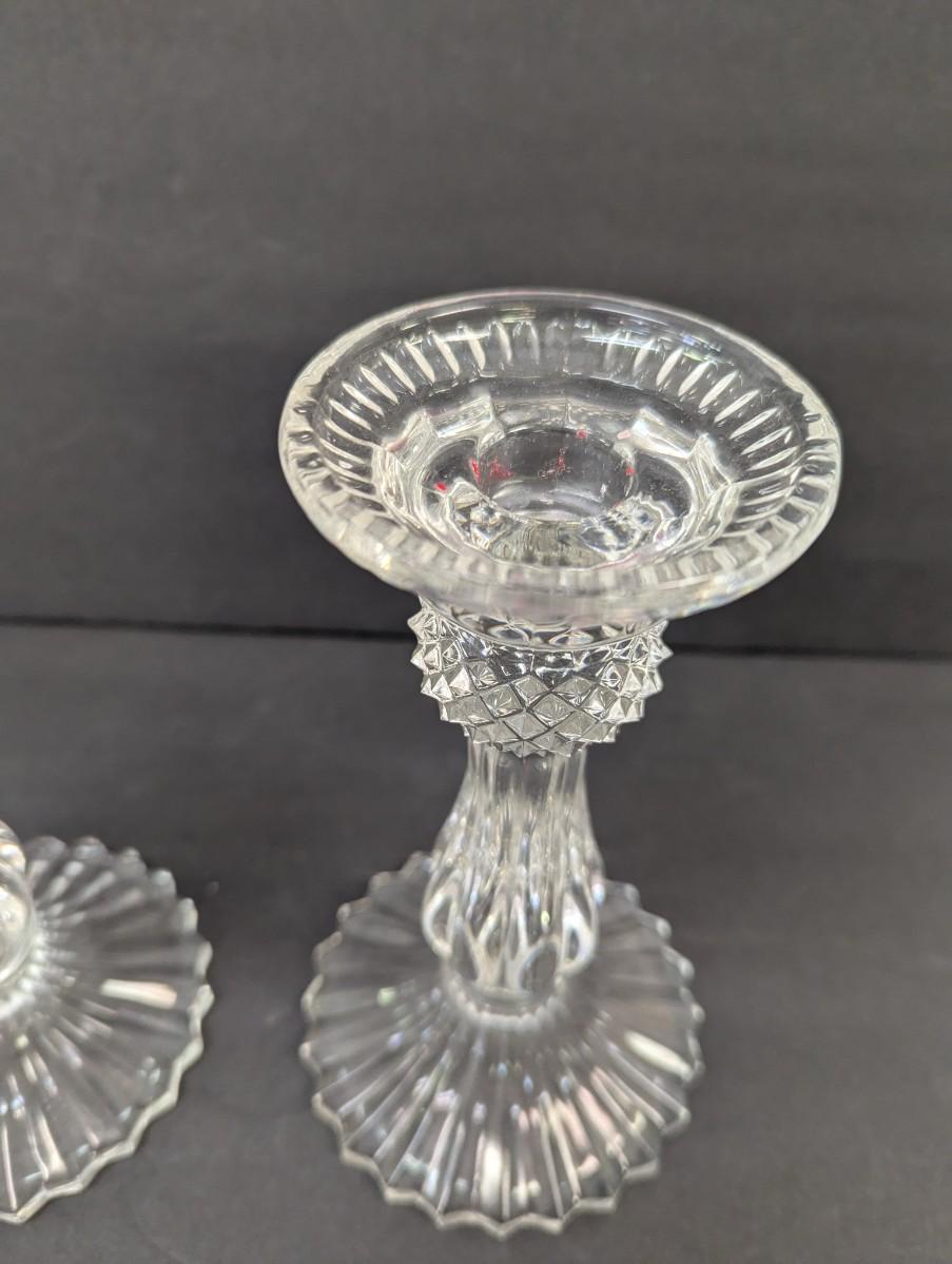 1980's Crystal Diamond Point Candle Stick Holders Approx 8 1/2" Tall