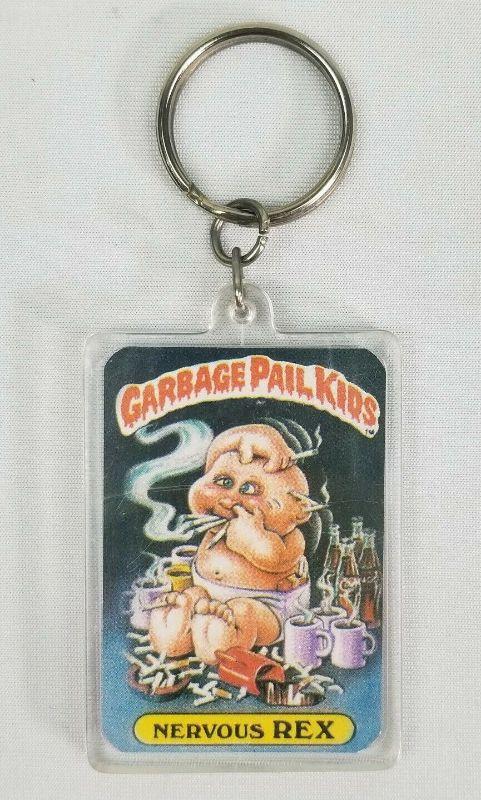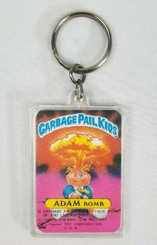 1980's Garbage Pail Kids Trading Cards Keychain Adam Bomb/Nervous Rex