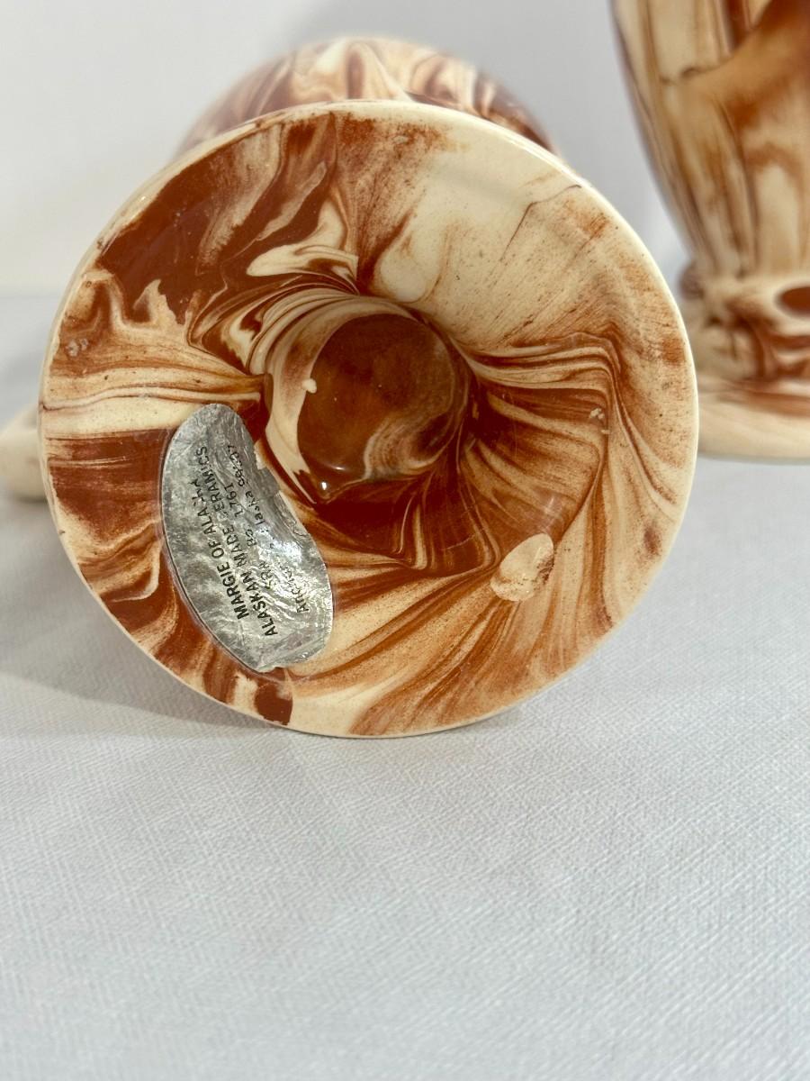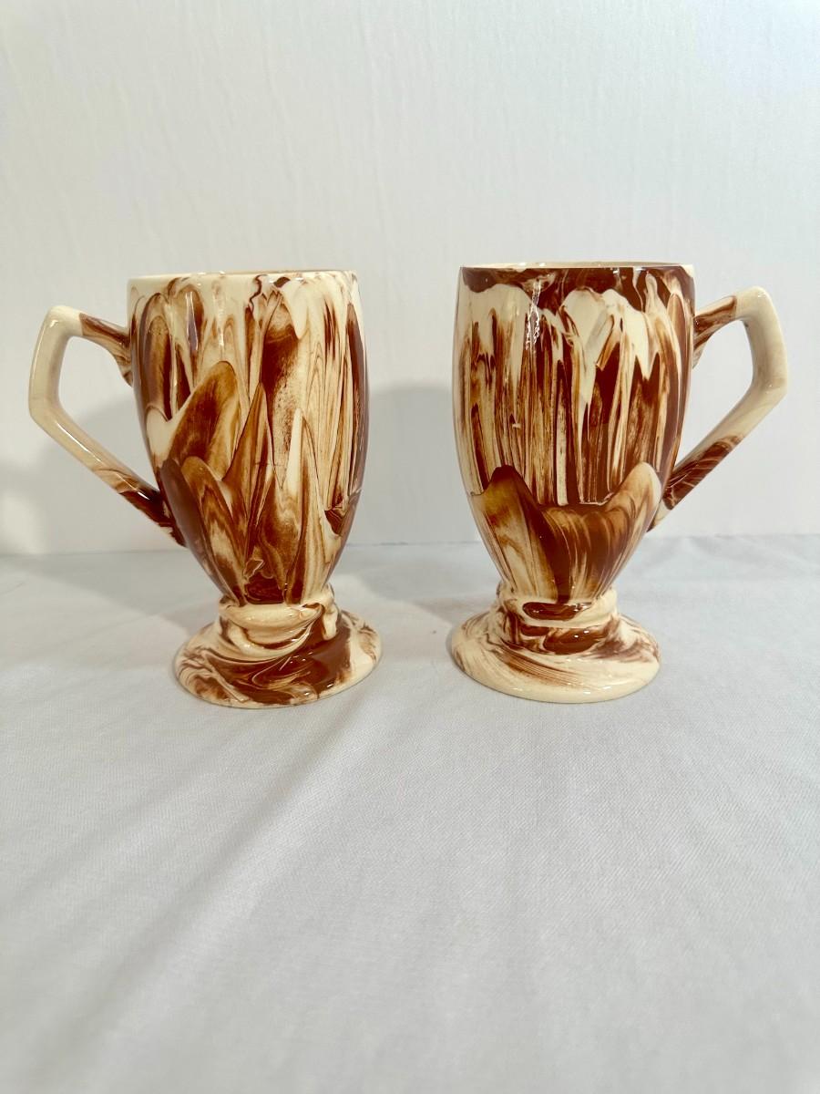 Eye catchers! These marbled steins/mugs were made by Margie of Alaska, a Native Inuit artist in Alaska. No chips and shine like new.
