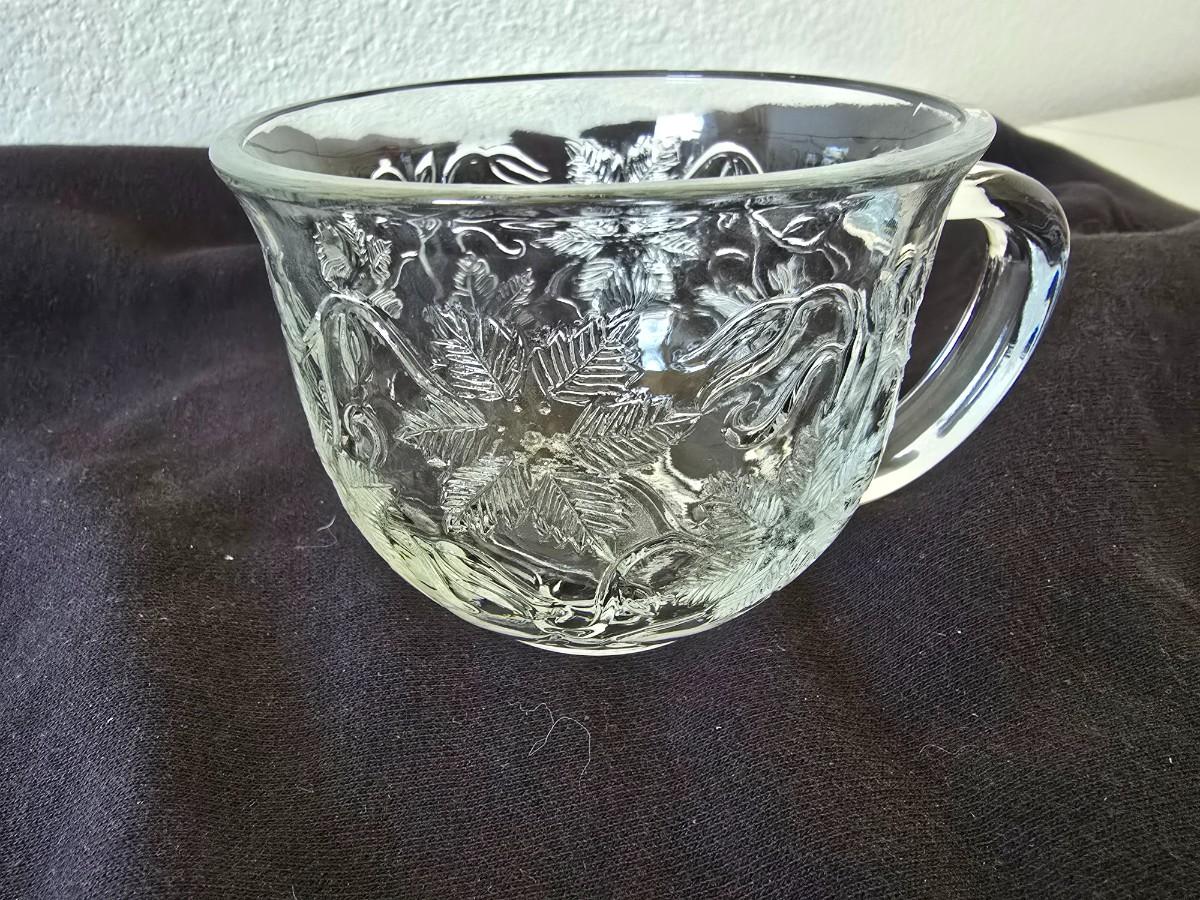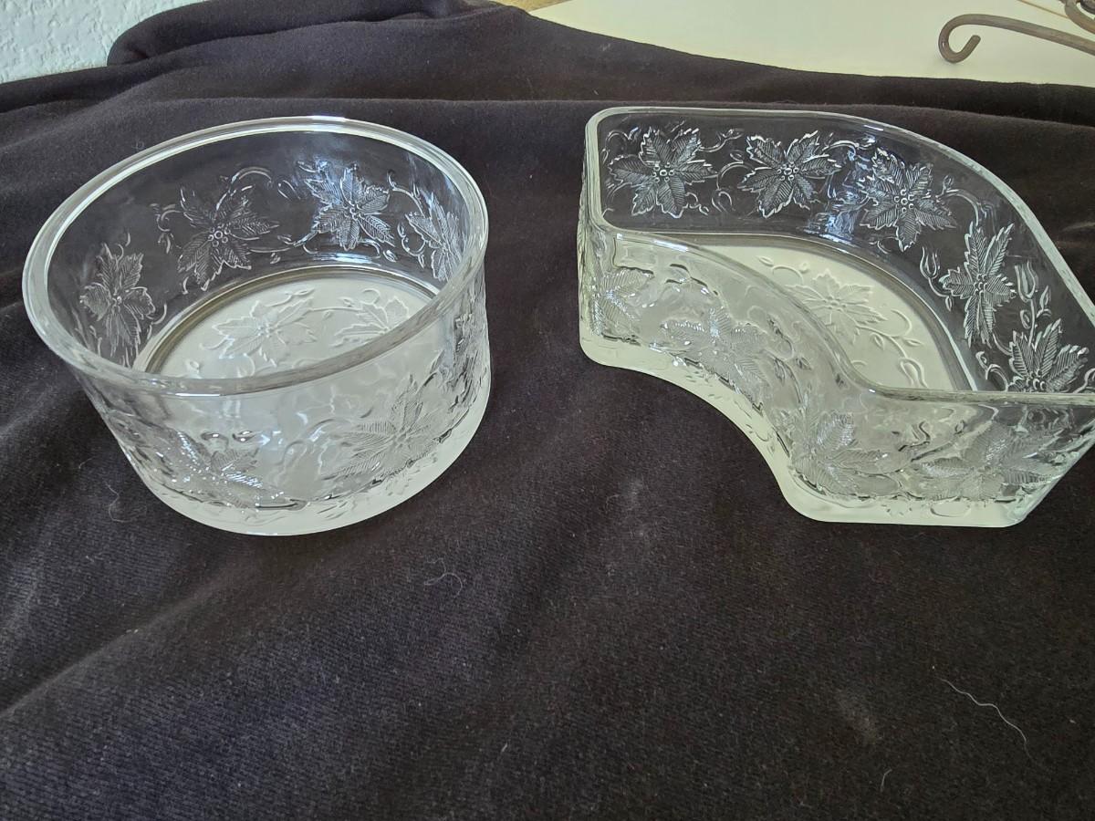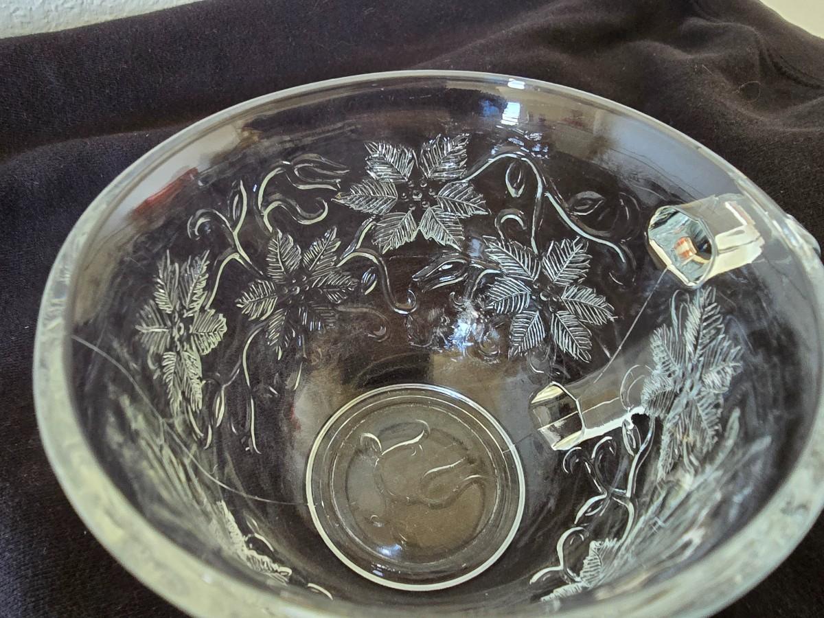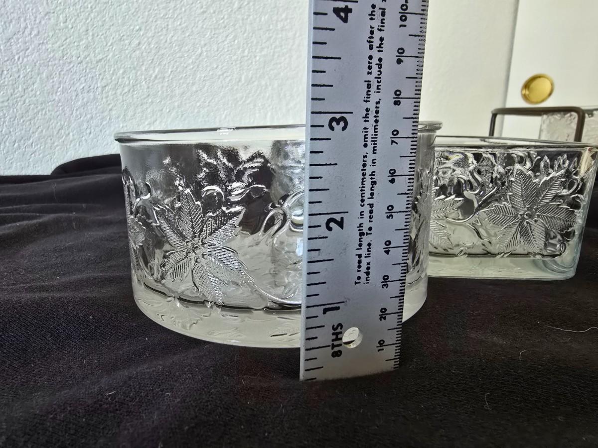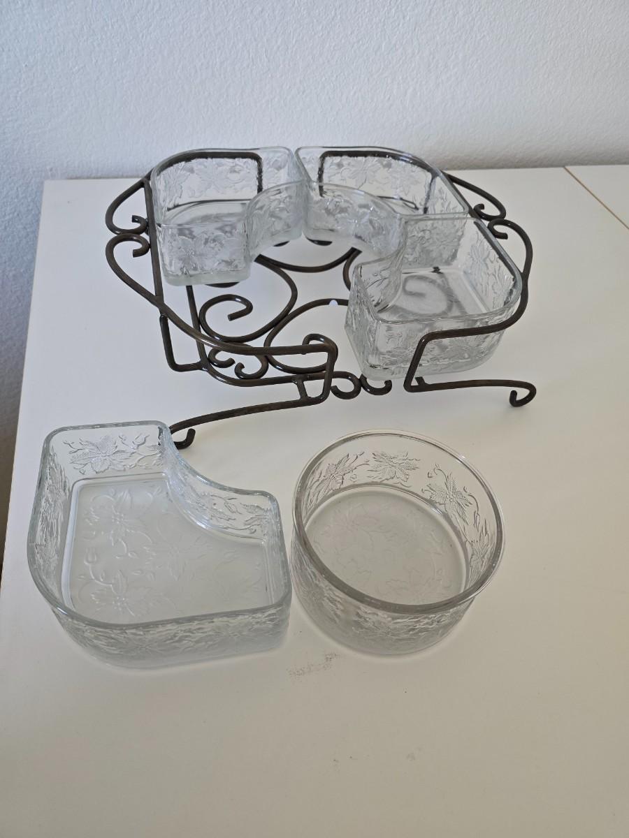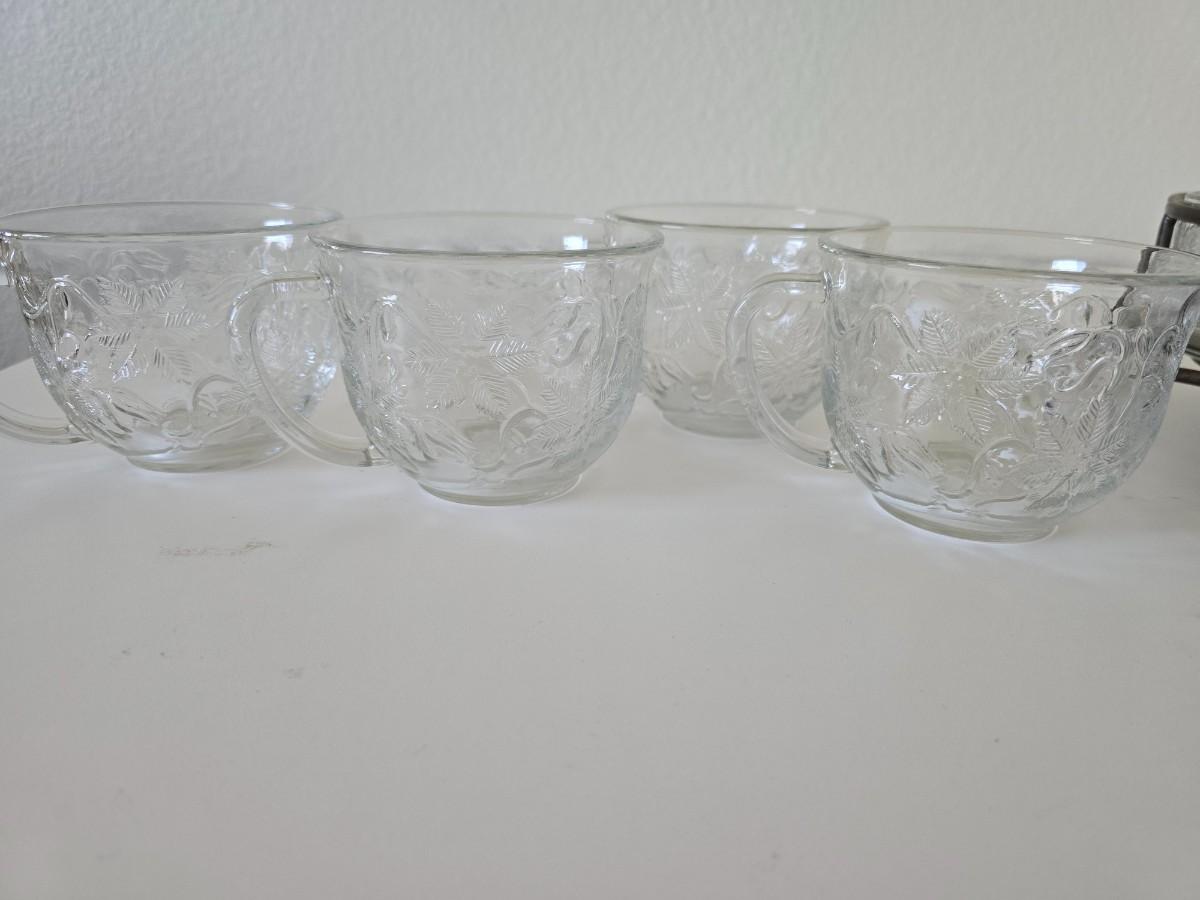 Gorgeous entertainment piece from Princess House®. The set is in the Fantasia® Crystal pattern that features an embossed poinsettia motif. This 7-piece Chip and Dip Set includes 5 crystal pieces, a plastic lid and one-piece metal holder. This set does NOT come with the original box. Also included is 4 Princess House Fantasia Cappuccino Mugs