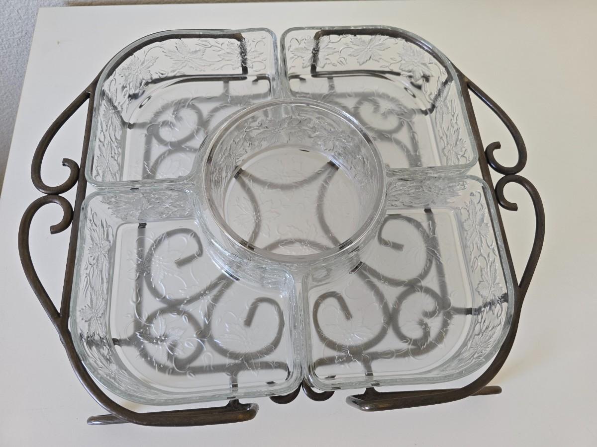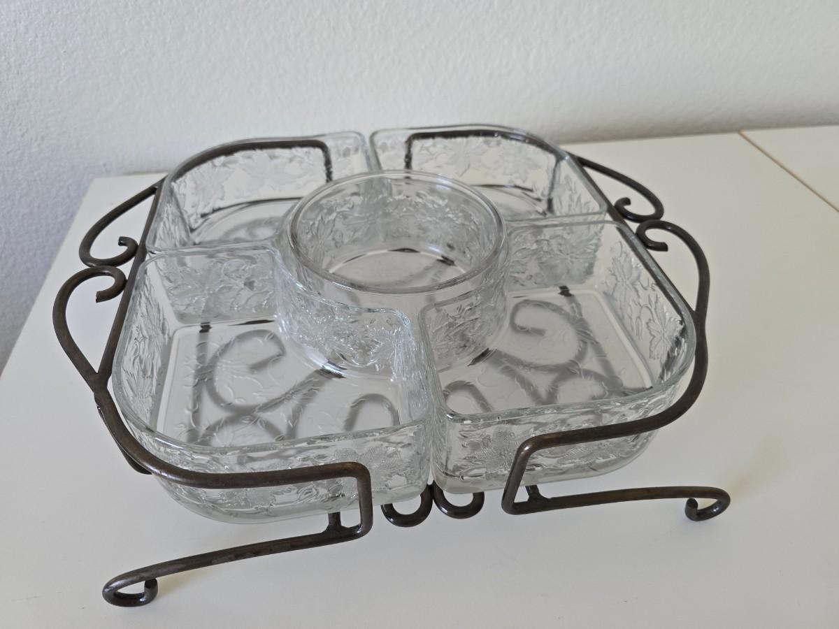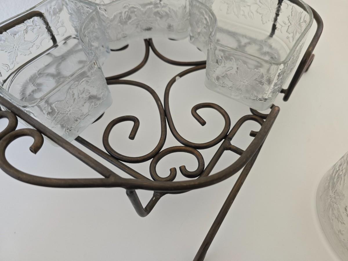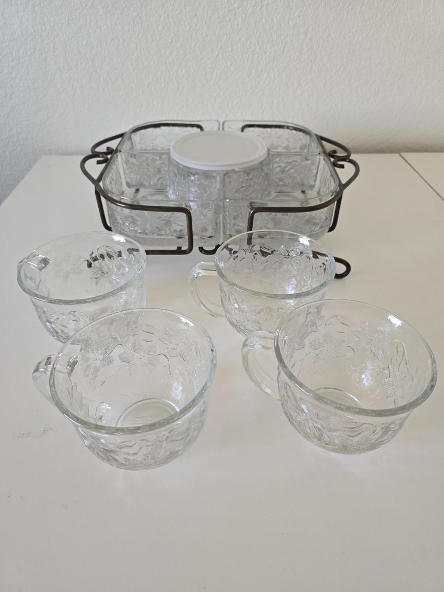 1980's Princess House® #593 FANTASIA® 7-Piece Chip & Dip Set includes 2-piece Metal Holder with 4 Princess House Fantasia Cappuccino Mugs